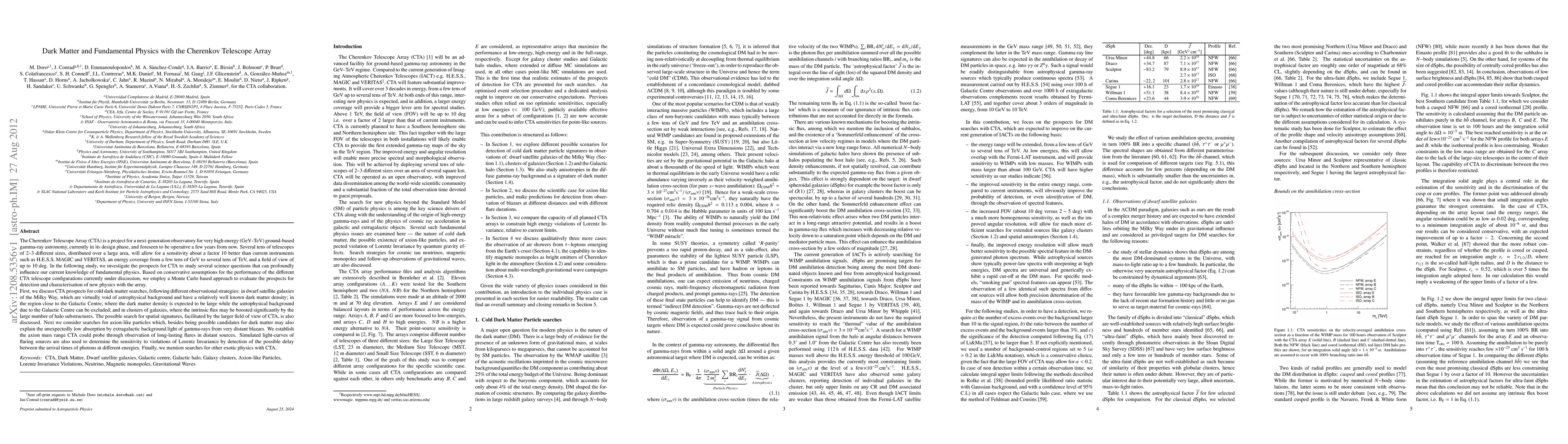 The Cherenkov Telescope Array (CTA) promises a tenfold improvement in sensitivity over current gamma-ray observatories, enabling detailed studies of dark matter in various astrophysical environments and potential detection of axion-like particles. The study evaluates CTA's capability to detect dark matter signatures, search for axions, and test Lorentz invariance through gamma-ray observations.