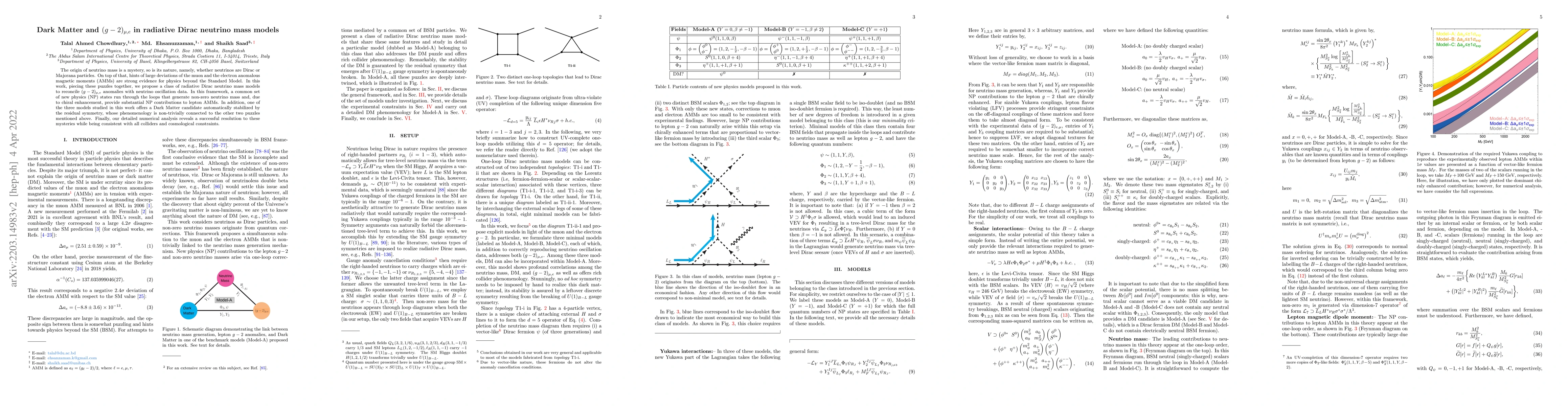 The paper presents a novel class of radiative Dirac neutrino mass models that simultaneously explain (g-2)μ,e anomalies and provide a dark matter candidate.
