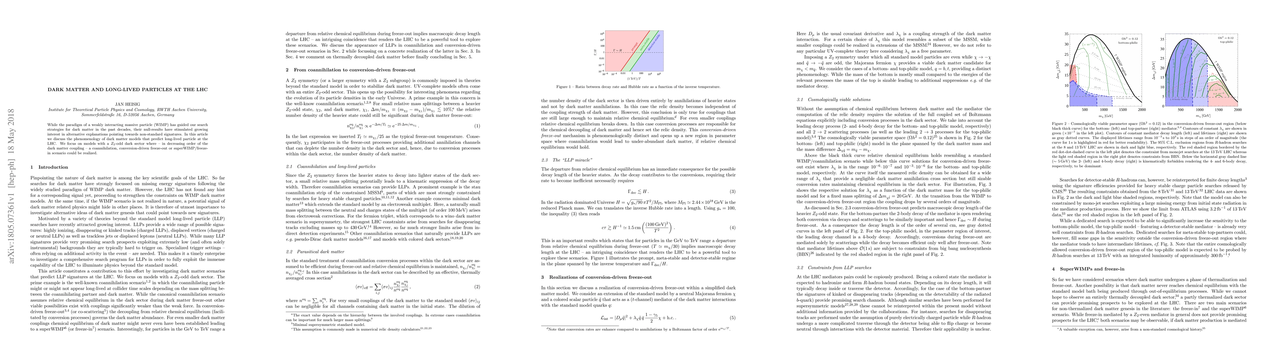 This paper explores alternative dark matter models predicting long-lived particles at the LHC, focusing on $Z_2$-odd dark sectors. It examines potential scenarios including coannihilation, conversion-driven freeze-out, and superWIMP/freeze-in mechanisms.