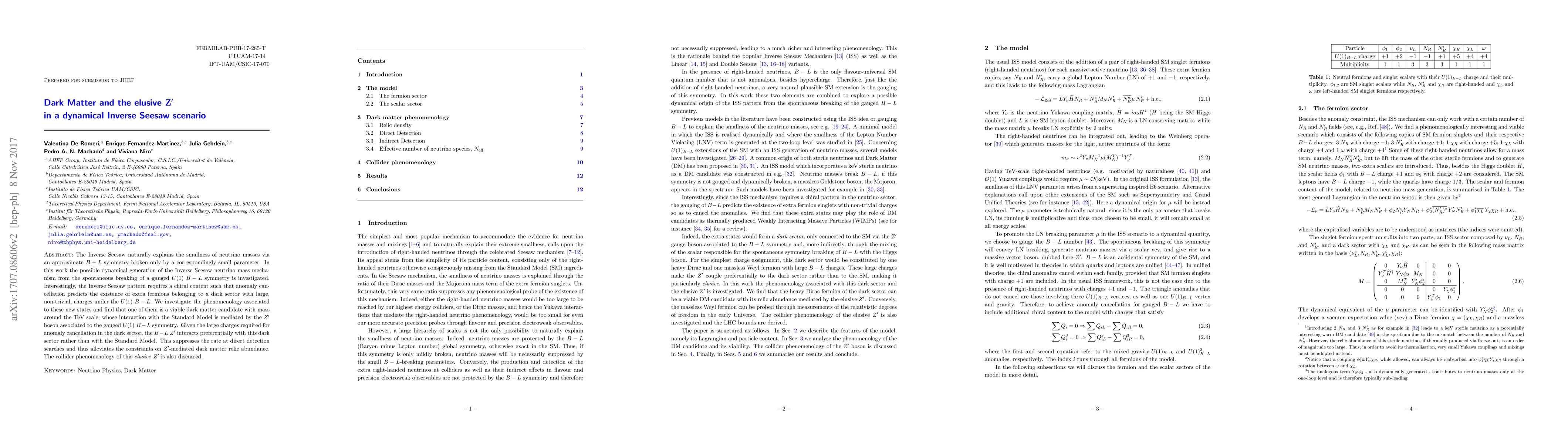 The Inverse Seesaw naturally explains the smallness of neutrino masses via an approximate $B-L$ symmetry broken only by a correspondingly small parameter. In this work the possible dynamical generation of the Inverse Seesaw neutrino mass mechanism from the spontaneous breaking of a gauged $U(1)$ $B-L$ symmetry is investigated. Interestingly, the Inverse Seesaw pattern requires a chiral content such that anomaly cancellation predicts the existence of extra fermions belonging to a dark sector with large, non-trivial, charges under the $U(1)$ $B-L$. We investigate the phenomenology associated to these new states and find that one of them is a viable dark matter candidate with mass around the TeV scale, whose interaction with the Standard Model is mediated by the $Z'$ boson associated to the gauged $U(1)$ $B-L$ symmetry. Given the large charges required for anomaly cancellation in the dark sector, the $B-L$ $Z'$ interacts preferentially with this dark sector rather than with the Standard Model. This suppresses the rate at direct detection searches and thus alleviates the constraints on $Z'$-mediated dark matter relic abundance. The collider phenomenology of this elusive $Z'$ is also discussed.