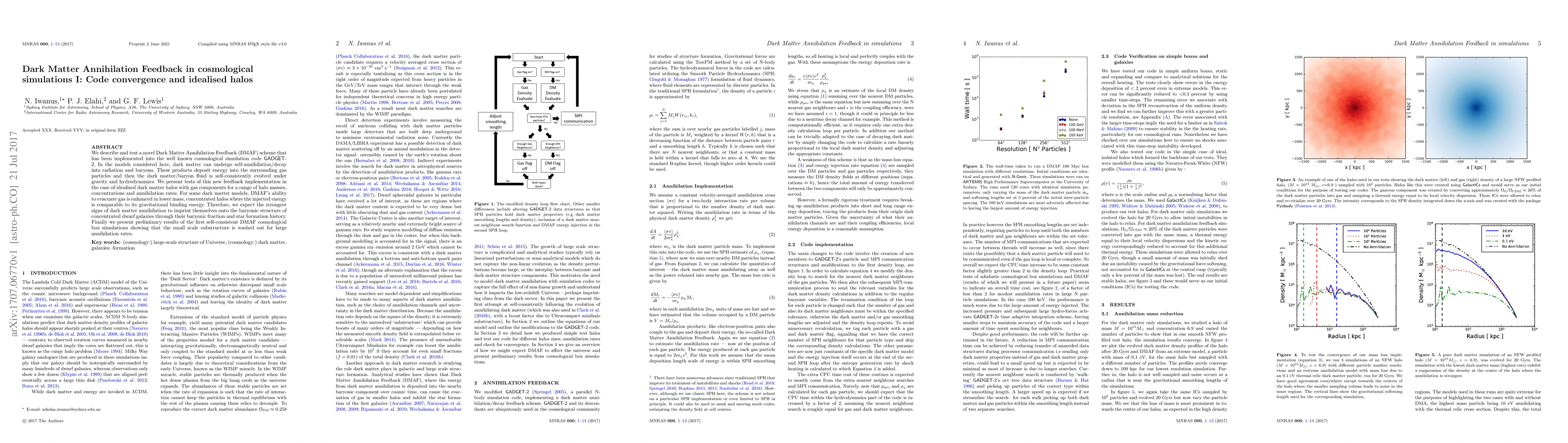 We describe and test a novel Dark Matter Annihilation Feedback (DMAF) scheme that has been implemented into the well known cosmological simulation code \textsf{GADGET-2}. In the models considered here, dark matter can undergo self-annihilation/decay into radiation and baryons. These products deposit energy into the surrounding gas particles and then the dark matter/baryon fluid is self-consistently evolved under gravity and hydrodynamics. We present tests of this new feedback implementation in the case of idealised dark matter halos with gas components for a range of halo masses, concentrations and annihilation rates. For some dark matter models, DMAF's ability to evacuate gas is enhanced in lower mass, concentrated halos where the injected energy is comparable to its gravitational binding energy. Therefore, we expect the strongest signs of dark matter annihilation to imprint themselves onto the baryonic structure of concentrated dwarf galaxies through their baryonic fraction and star formation history. Finally we present preliminary results of the first self-consistent DMAF cosmological box simulations showing that the small scale substructure is washed out for large annihilation rates.