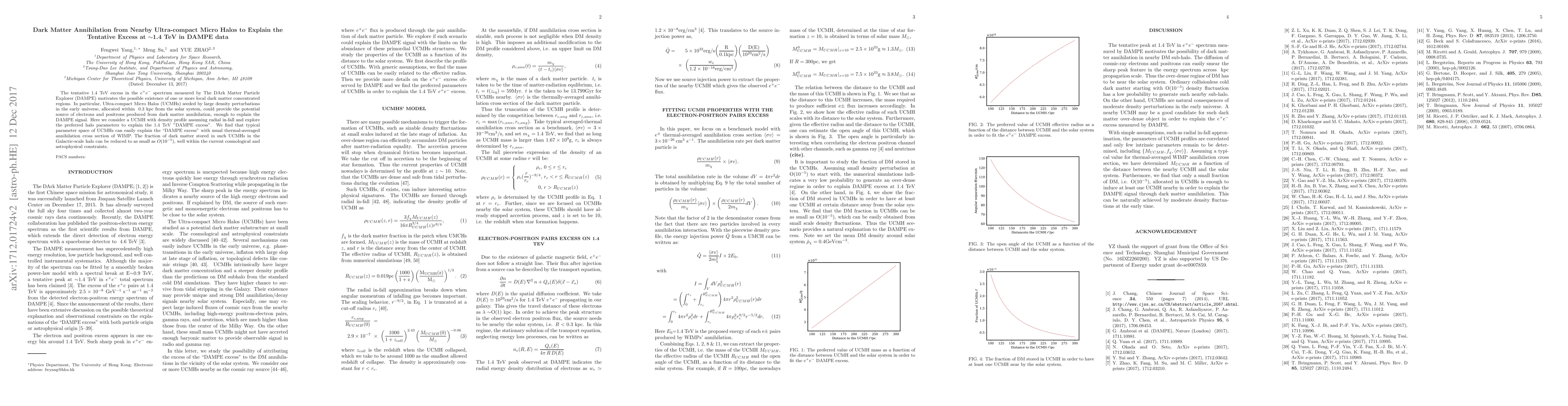 This paper explores the potential contribution of Ultra-compact Micro Halos (UCMHs) near the solar system to the 1.4 TeV excess in DAMPE's electron-positron spectrum, suggesting that these regions could be a source of dark matter annihilation. The study finds that UCMHs can explain the excess with minimal impact on the overall dark matter distribution, satisfying current cosmological constraints.