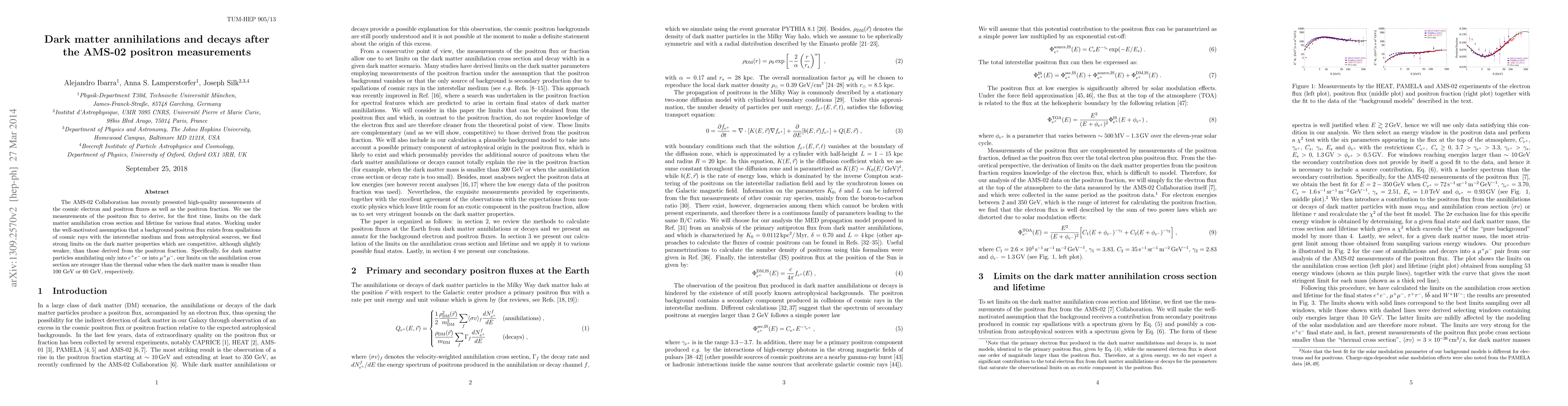 The AMS-02 collaboration has recently presented measurements of excellent quality of the cosmic electron and positron fluxes as well as the positron fraction. We use the measurements of the positron flux to derive, for the first time, limits on the dark matter annihilation cross section and lifetime for various final states. Working under the well-motivated assumption that a background positron flux exists from spallations of cosmic rays with the interstellar medium and from astrophysical sources, we find strong limits on the dark matter properties which are competitive, although slightly weaker, than those derived from the positron fraction. Specifically, for dark matter particles annihilating only into e+ e- or into mu+ mu-, our limits on the annihilation cross section are stronger than the thermal value when the dark matter mass is smaller than 100 GeV or 60 GeV, respectively.