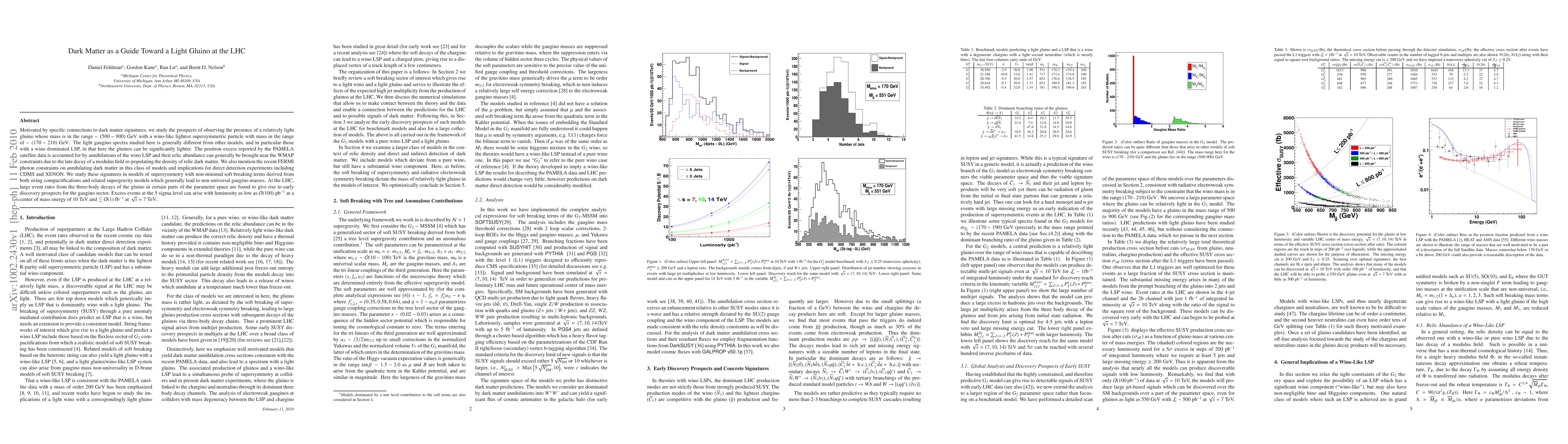 Motivated by specific connections to dark matter signatures, we study the prospects of observing the presence of a relatively light gluino whose mass is in the range ~(500-900) GeV with a wino-like lightest supersymmetric particle with mass in the range of ~(170-210) GeV. The light gaugino spectra studied here is generally different from other models, and in particular those with a wino dominated LSP, in that here the gluinos can be significantly lighter. The positron excess reported by the PAMELA satellite data is accounted for by annihilations of the wino LSP and their relic abundance can generally be brought near the WMAP constraints due to the late decay of a modulus field re-populating the density of relic dark matter. We also mention the recent FERMI photon constraints on annihilating dark matter in this class of models and implications for direct detection experiments including CDMS and XENON. We study these signatures in models of supersymmetry with non-minimal soft breaking terms derived from both string compactifications and related supergravity models which generally lead to non-universal gaugino masses. At the LHC, large event rates from the three-body decays of the gluino in certain parts of the parameter space are found to give rise to early discovery prospects for the gaugino sector. Excess events at the 5 sigma level can arise with luminosity as low as order 100 pb^{-1} at a center of mass energy of 10 TeV and less than ~ 1 fb^{-1} at a center of mass energy of 7 TeV.