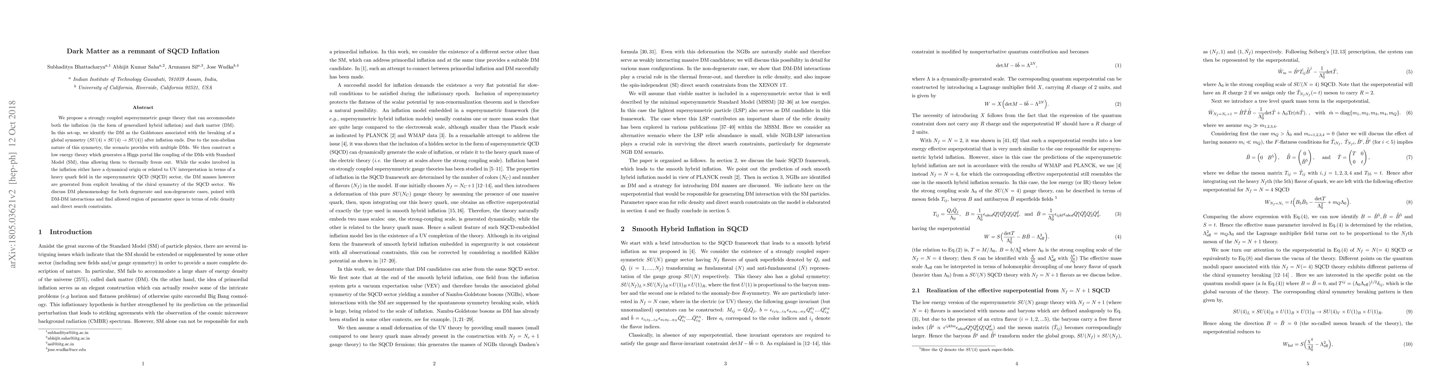This paper proposes a strongly coupled supersymmetric gauge theory for inflation and dark matter, identifying dark matter as Goldstone bosons from symmetry breaking. It constructs a low-energy theory with a Higgs portal coupling, allowing dark matter to freeze out thermally, and discusses its phenomenology and parameter space based on relic density and direct search constraints.