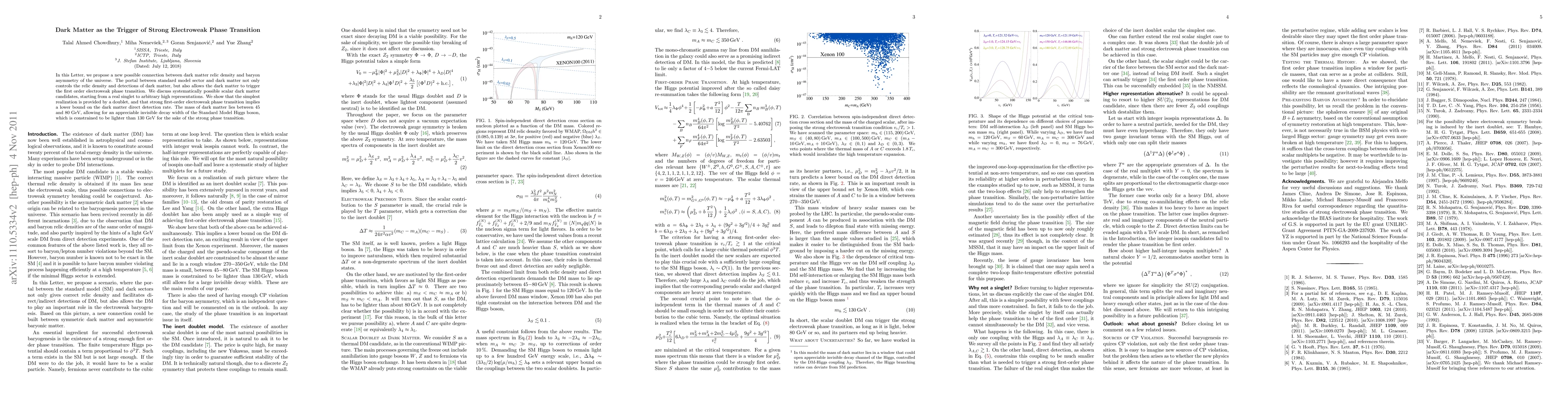 This paper proposes a novel link between dark matter and the electroweak phase transition, suggesting that dark matter can trigger such a transition. It explores scalar dark matter candidates, finding that a doublet provides the simplest realization, with dark matter masses between 45 and 80 GeV and an invisible decay width for the Higgs boson.