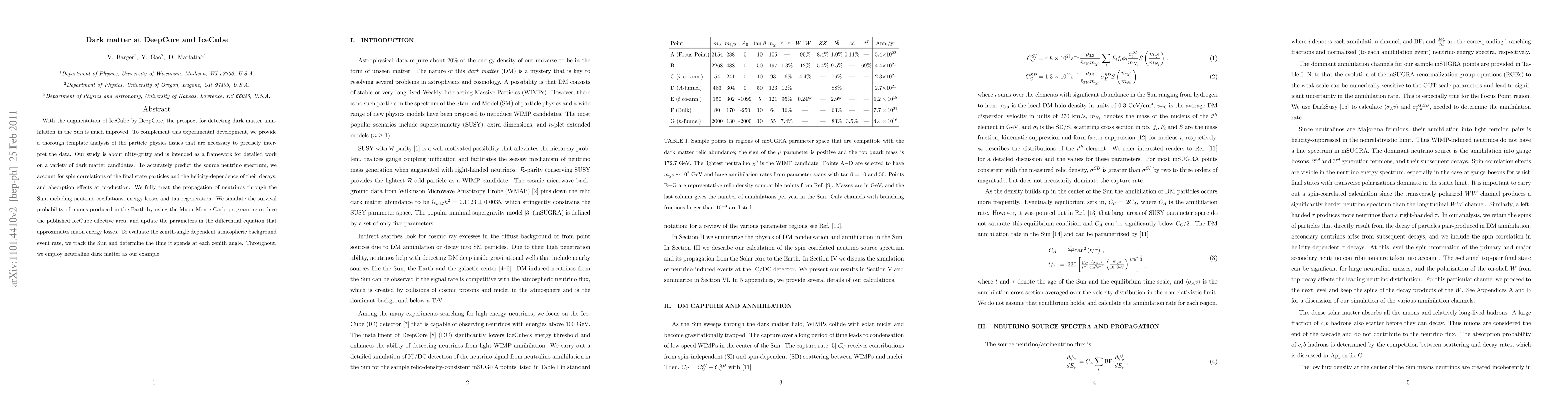 With the augmentation of IceCube by DeepCore, the prospect for detecting dark matter annihilation in the Sun is much improved. To complement this experimental development, we provide a thorough template analysis of the particle physics issues that are necessary to precisely interpret the data. Our study is about nitty-gritty and is intended as a framework for detailed work on a variety of dark matter candidates. To accurately predict the source neutrino spectrum, we account for spin correlations of the final state particles and the helicity-dependence of their decays, and absorption effects at production. We fully treat the propagation of neutrinos through the Sun, including neutrino oscillations, energy losses and tau regeneration. We simulate the survival probability of muons produced in the Earth by using the Muon Monte Carlo program, reproduce the published IceCube effective area, and update the parameters in the differential equation that approximates muon energy losses. To evaluate the zenith-angle dependent atmospheric background event rate, we track the Sun and determine the time it spends at each zenith angle. Throughout, we employ neutralino dark matter as our example.