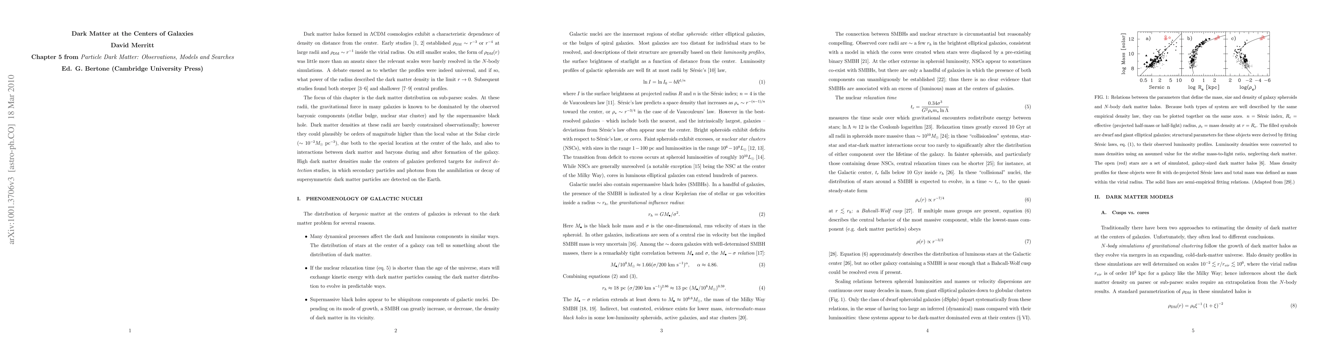 A review of the distribution of dark matter on sub-parsec scales at the centers of galaxies.