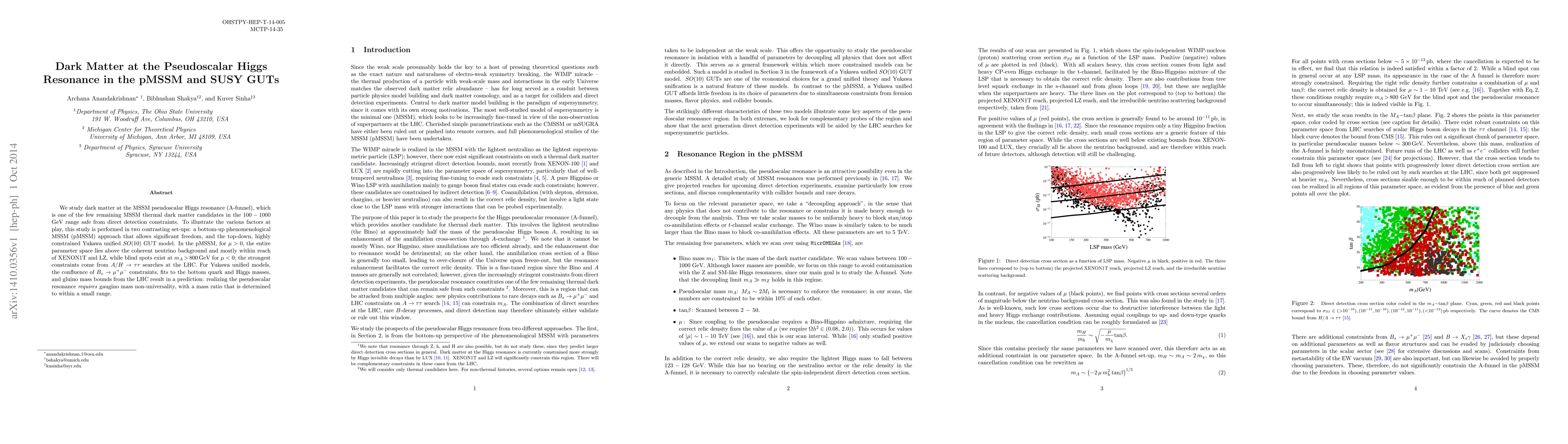 We study dark matter at the MSSM pseudoscalar Higgs resonance (A-funnel), which is one of the few remaining MSSM thermal dark matter candidates in the $100-1000$ GeV range safe from direct detection constraints. To illustrate the various factors at play, this study is performed in two contrasting set-ups: a bottom-up phenomenological MSSM (pMSSM) approach that allows significant freedom, and the top-down, highly constrained Yukawa unified $SO(10)$ GUT model. In the pMSSM, for $\mu > 0$, the entire parameter space lies above the coherent neutrino background and mostly within reach of XENON1T and LZ, while blind spots exist at $m_A\,> \, 800\,$GeV for $\mu < 0$; the strongest constraints come from $A/H \rightarrow \tau \tau$ searches at the LHC. For Yukawa unified models, the confluence of $B_s \rightarrow \mu^+ \mu^-$ constraints, fits to the bottom quark and Higgs masses, and gluino mass bounds from the LHC result in a prediction: realizing the pseudoscalar resonance $requires$ gaugino mass non-universality, with a mass ratio that is determined to within a small range.