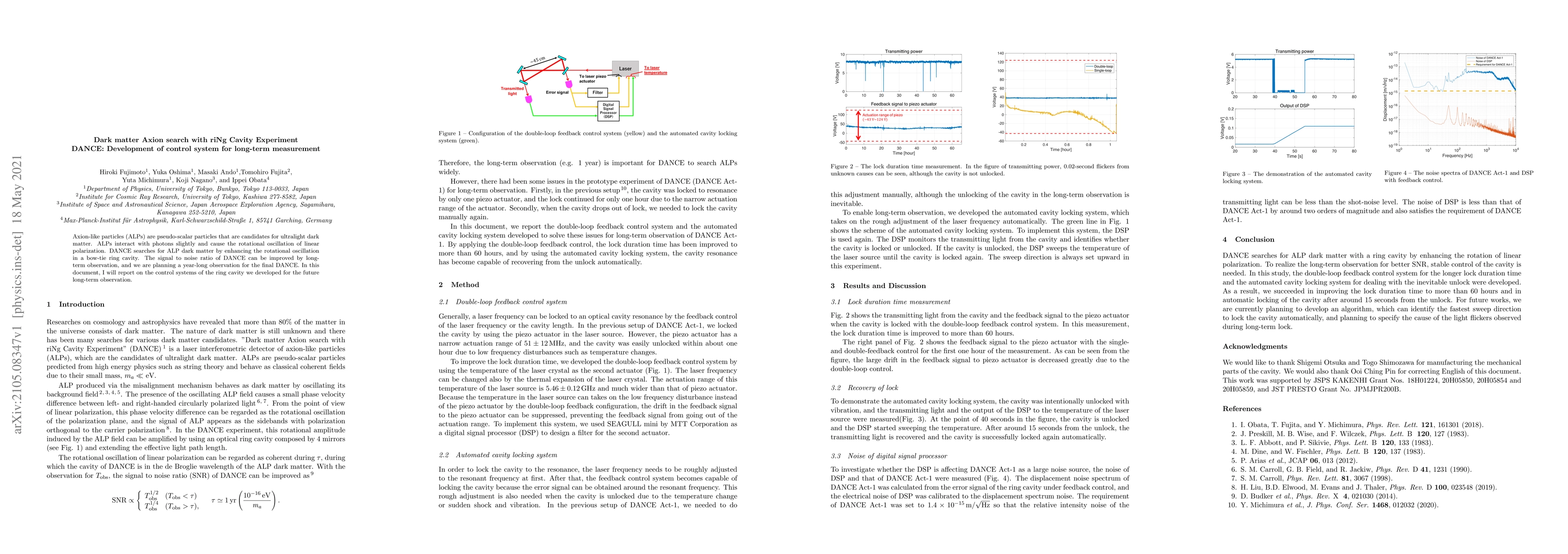 Axion-like particles (ALPs) are pseudo-scalar particles that are candidates for ultralight dark matter. ALPs interact with photons slightly and cause the rotational oscillation of linear polarization. DANCE searches for ALP dark matter by enhancing the rotational oscillation in a bow-tie ring cavity. The signal to noise ratio of DANCE can be improved by long-term observation, and we are planning a year-long observation for the final DANCE. In this document, I will report on the control systems of the ring cavity we developed for the future long-term observation.