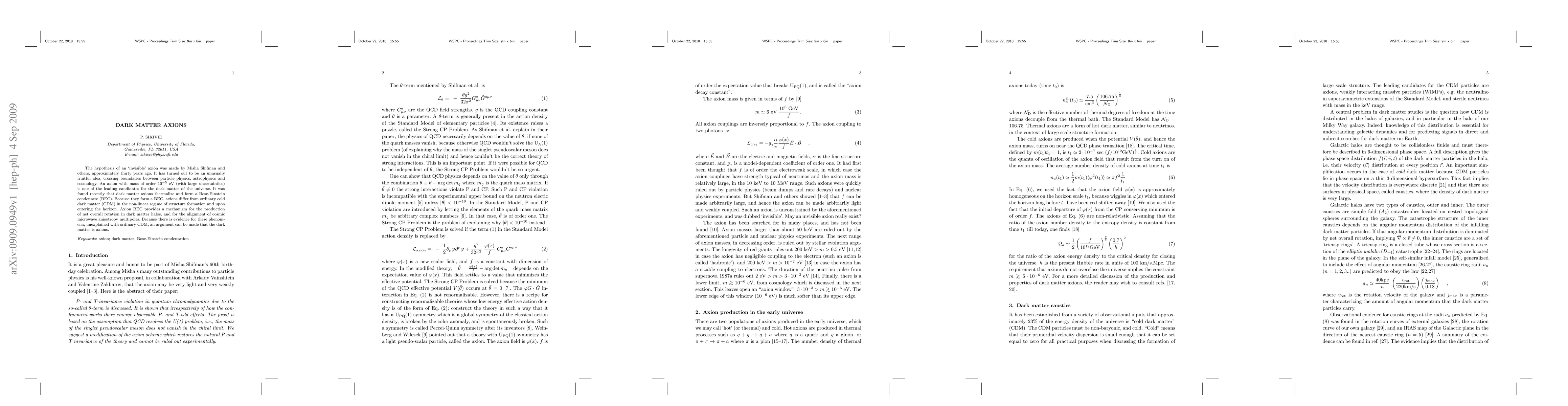 The hypothesis of an `invisible' axion was made by Misha Shifman and others, approximately thirty years ago. It has turned out to be an unusually fruitful idea, crossing boundaries between particle physics, astrophysics and cosmology. An axion with mass of order $10^{-5}$ eV (with large uncertainties) is one of the leading candidates for the dark matter of the universe. It was found recently that dark matter axions thermalize and form a Bose-Einstein condensate (BEC). Because they form a BEC, axions differ from ordinary cold dark matter (CDM) in the non-linear regime of structure formation and upon entering the horizon. Axion BEC provides a mechanism for the production of net overall rotation in dark matter halos, and for the alignment of cosmic microwave anisotropy multipoles. Because there is evidence for these phenomena, unexplained with ordinary CDM, an argument can be made that the dark matter is axions.