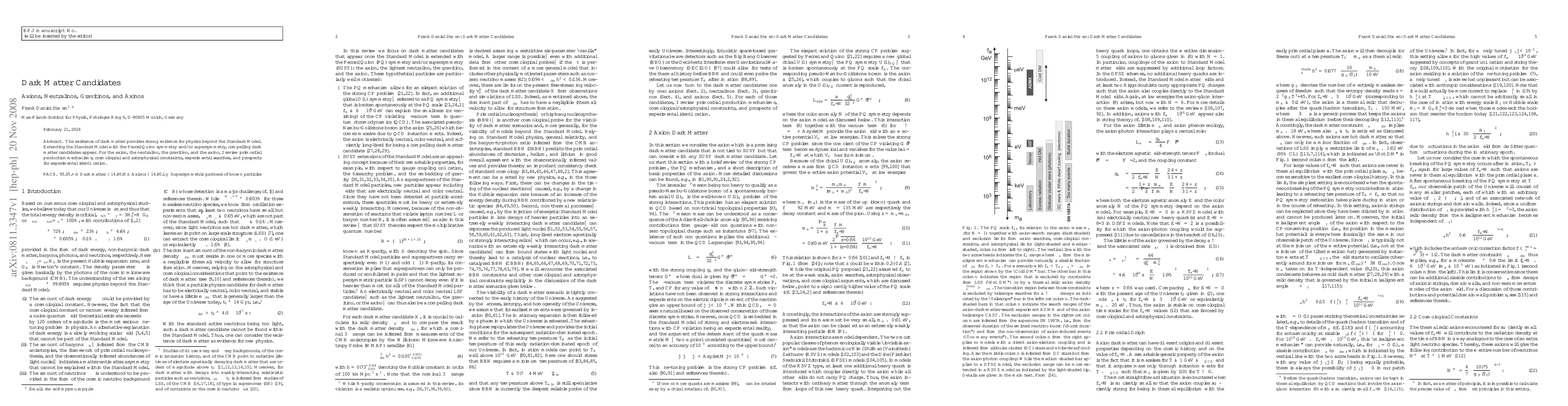 The existence of dark matter provides strong evidence for physics beyond the Standard Model. Extending the Standard Model with the Peccei-Quinn symmetry and/or supersymmetry, compelling dark matter candidates appear. For the axion, the neutralino, the gravitino, and the axino, I review primordial production mechanisms, cosmological and astrophysical constraints, experimental searches, and prospects for experimental identification.
