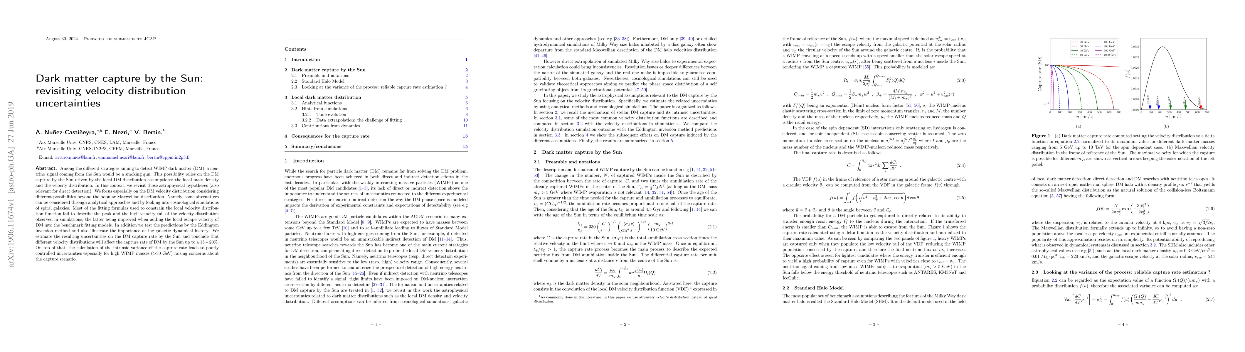 This paper revisits the assumptions regarding the dark matter (DM) velocity distribution, crucial for capturing DM by the Sun and detecting a neutrino signal. It explores alternatives to the Maxwellian distribution, finding that fitting formulas often miss the high-velocity tail, which is better captured by including the local escape velocity. The study concludes that different velocity distributions can alter the DM capture rate by the Sun by up to 15-20%, with significant uncertainties for high WIMP masses.