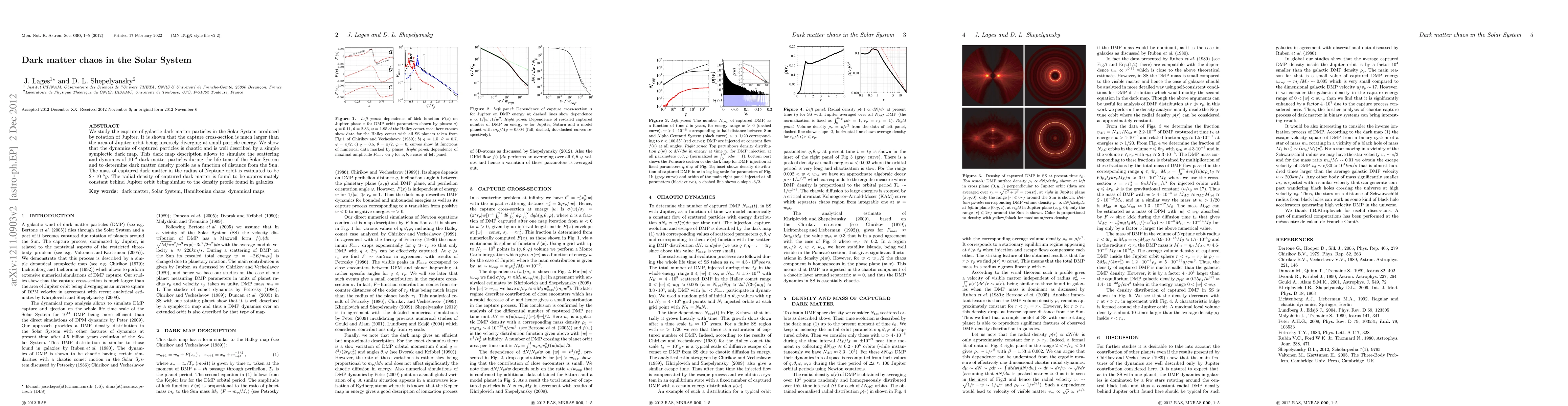 This paper investigates the capture of galactic dark matter particles in the Solar System, particularly influenced by Jupiter's rotation, revealing a significantly larger capture cross section than expected. The study employs a symplectic dark map to describe the chaotic dynamics of captured particles, estimating a dark matter density profile and finding a mass of $2 \cdot 10^{15}$ g within Neptune's orbit.