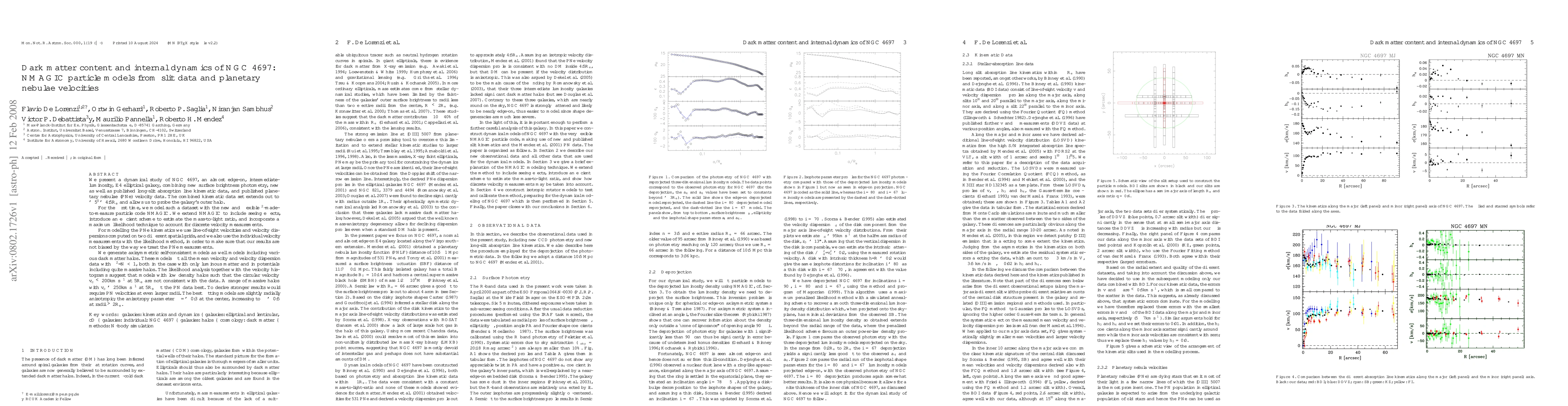 We present a dynamical study of NGC 4697, an almost edge-on, intermediate-luminosity, E4 elliptical galaxy, combining new surface brightness photometry, new as well as published long-slit absorption line kinematic data, and published planetary nebulae (PNe) velocity data. The combined kinematic data set extends out to ~= 5' ~= 4.5 R_e and allows us to probe the galaxy's outer halo. For the first time, we model such a dataset with the new and flexible Chi^2-made-to-measure particle code NMAGIC. We extend NMAGIC to include seeing effects, introduce an efficient scheme to estimate the mass-to-light ratio, and incorporate a maximum likelihood technique to account for discrete velocity measurements. For modelling the PNe kinematics we use line-of-sight velocities and velocity dispersions computed on two different spatial grids, and we also use the individual velocity measurements with the likelihood method, in order to make sure that our results are not biased by the way we treat the PNe measurements. We generate axisymmetric self-consistent models as well models including various dark matter halos. These models fit all the mean velocity and velocity dispersion data with Chi^2/N<1, both in the case with only luminous matter and in potentials including quite massive halos. The likelihood analysis together with the velocity histograms suggest that models with low density halos such that the circular velocity v_c ~< 200 km/s at R_e are not consistent with the data. A range of massive halos with v_c ~= 250 km/s at 5R_e fit the PN data best. To derive stronger results would require PN velocities at even larger radii. The best fitting models are slightly radially anisotropic; the anisotropy parameter beta ~= 0.3 at the center, increasing to beta ~= 0.5 at radii >~ 2R_e.