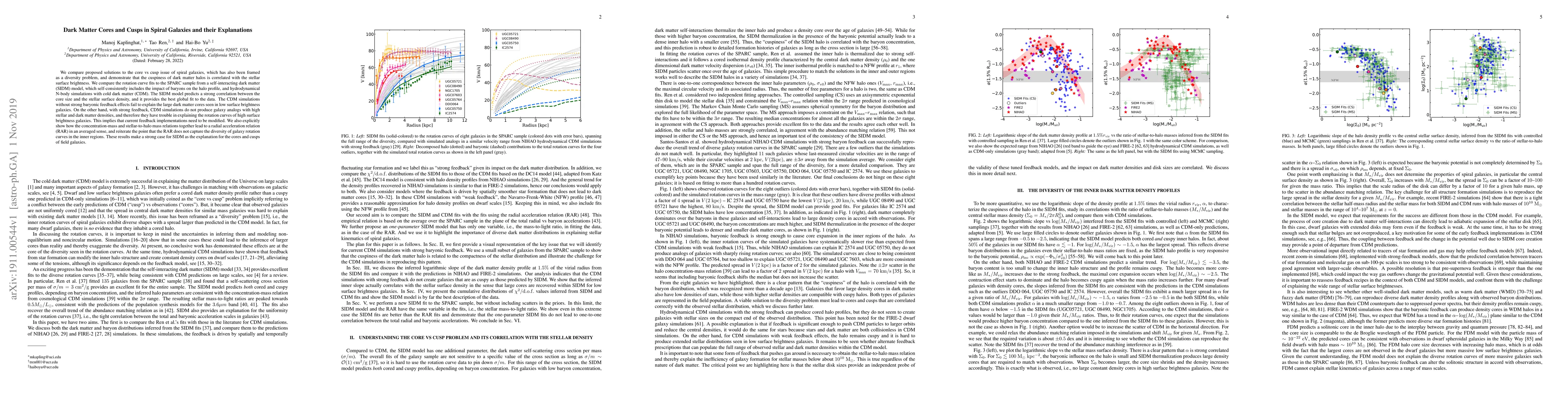 Research finds that dark matter halos in spiral galaxies have a correlation with stellar surface brightness, suggesting a self-interacting dark matter model as the best explanation for galaxy cores and cusps.