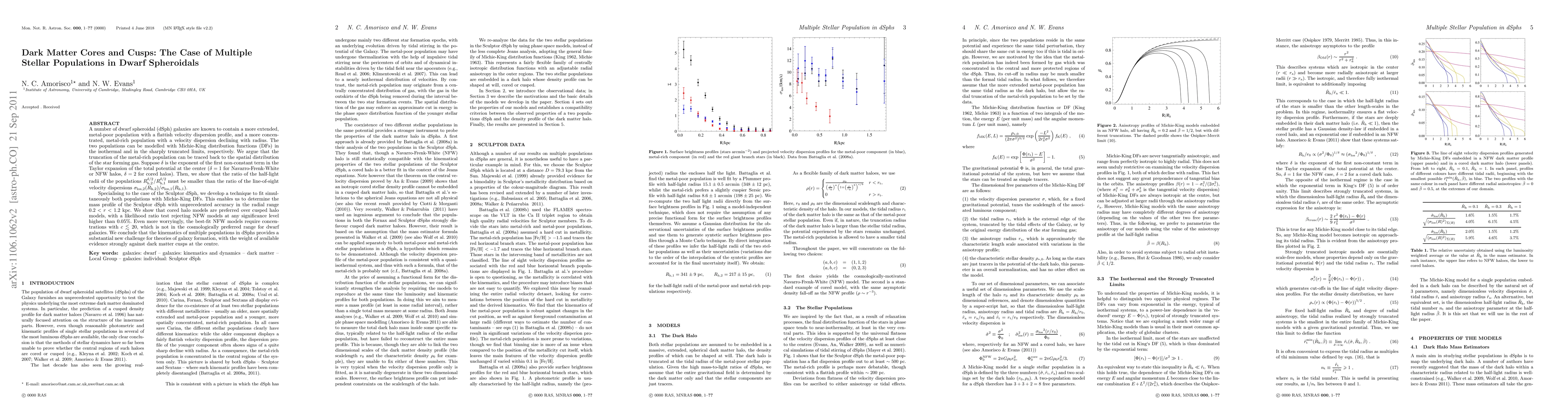A number of dwarf spheroidal (dSph) galaxies are known to contain a more extended, metal-poor population with a flattish velocity dispersion profile, and a more concentrated, metal-rich population with a velocity dispersion declining with radius. The two populations can be modelled with Michie-King distribution functions (DFs) in the isothermal and in the sharply truncated limits, respectively. We argue that the truncation of the metal-rich population can be traced back to the spatial distribution of the star forming gas. Suppose D is the exponent of the first non-constant term in the Taylor expansion of the total potential at the center (D=1 for NFW halos, D=2 for cored halos). Then, we show that the ratio of the half-light radii of the populations raised to the D/2 power must be smaller than the ratio of the line-of-sight velocity dispersions. Specialising to the case of the Sculptor dSph, we develop a technique to fit simultaneously both populations with Michie-King DFs. This enables us to determine the mass profile of the Sculptor dSph with unprecedented accuracy in the radial range between 0.2 and 1.2 kpc. We show that cored halo models are preferred over cusped halo models, with a likelihood ratio test rejecting NFW models at any significance level higher than 0.05%. Even more worryingly, the best-fit NFW models require concentrations with c<20, which is not in the cosmologically preferred range for dwarf galaxies. We conclude that the kinematics of multiple populations in dSphs provides a substantial new challenge for theories of galaxy formation, with the weight of available evidence strongly against dark matter cusps at the centre.