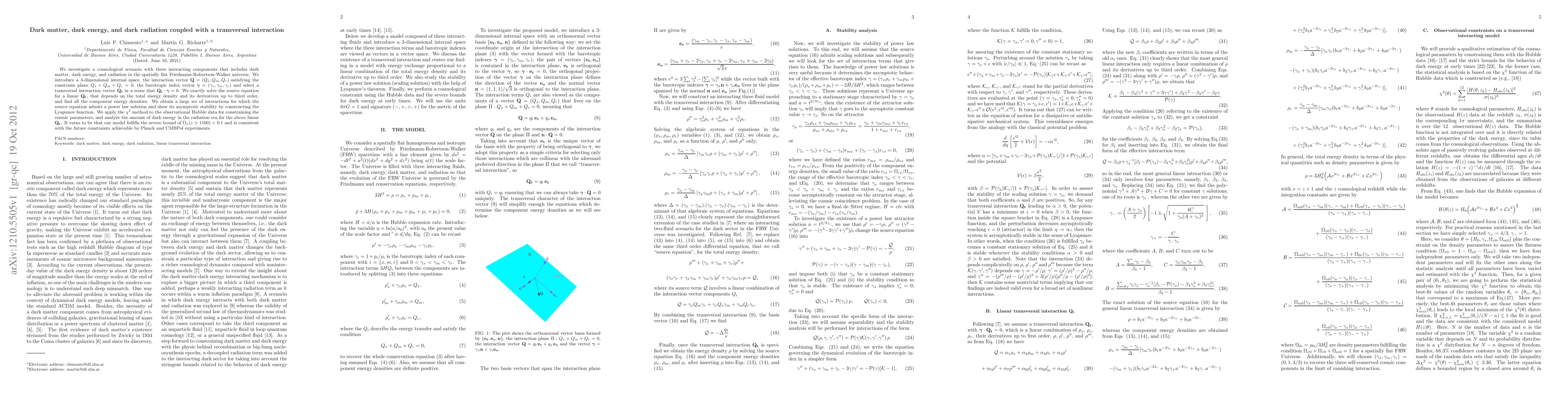 This paper explores a cosmological model with dark matter, dark energy, and dark radiation interacting through a transversal interaction vector. It finds a set of interactions that allow for a power law solution and demonstrates asymptotic stability using a Lyapunov function, while also showing consistency with observational data and future experimental constraints.