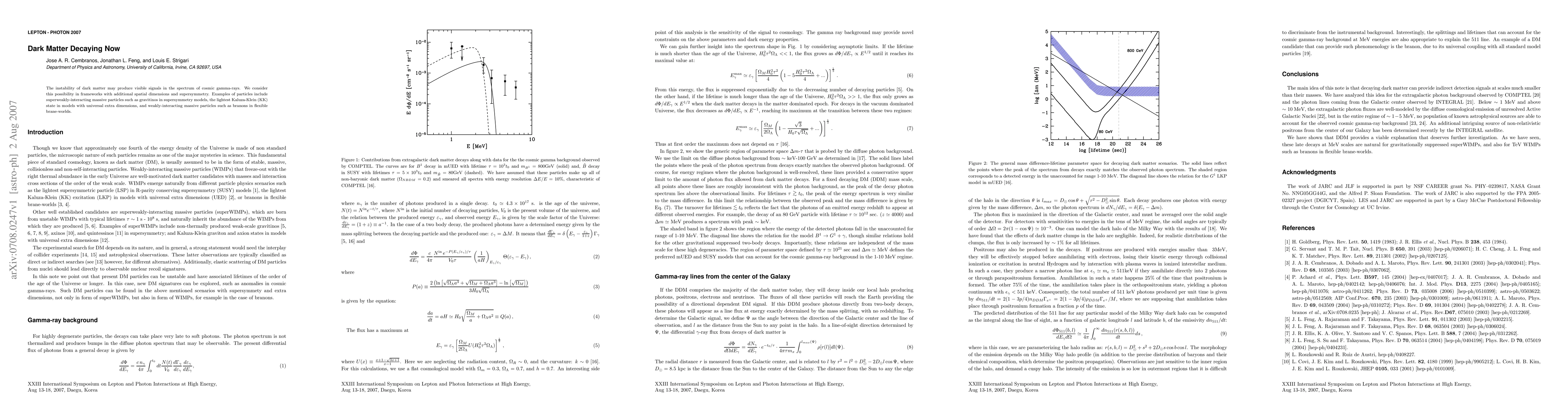 A new study proposes that dark matter could decay into visible particles like gamma-rays, potentially revealing its existence through cosmic signals. This idea is explored in frameworks with extra dimensions and supersymmetry, offering a possible explanation for the universe's mysterious dark matter.