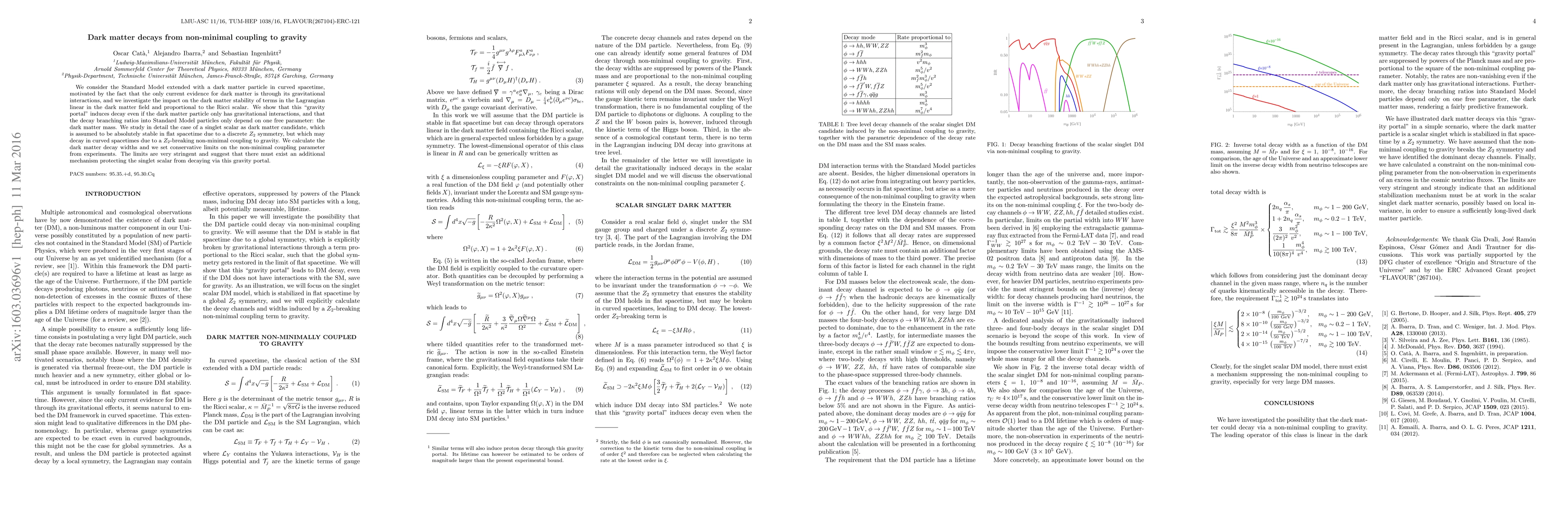This paper explores the decay of dark matter particles in curved spacetime due to non-minimal coupling to gravity, demonstrating that such interactions can lead to decay even without direct Standard Model interactions. It finds stringent experimental limits on the non-minimal coupling parameter, suggesting additional mechanisms are likely protecting dark matter from decaying through this "gravity portal."