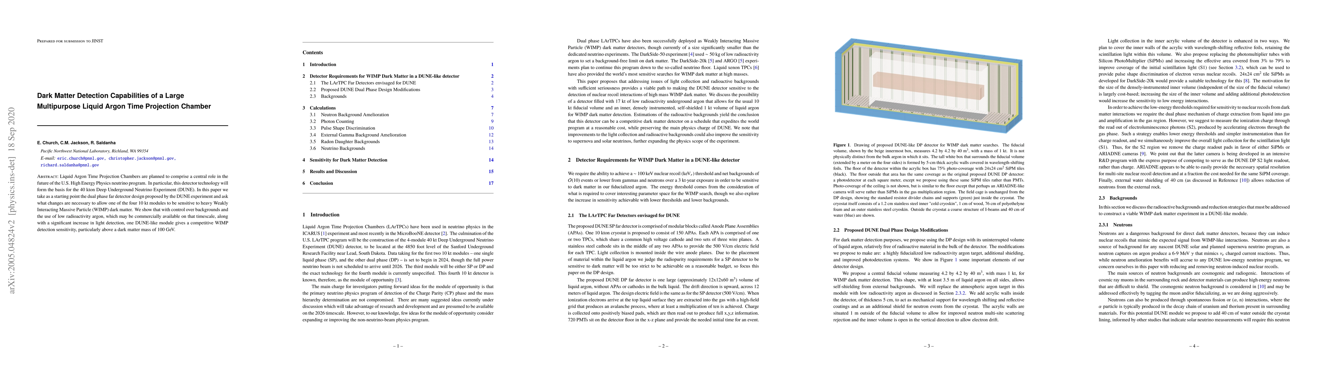 This paper explores the potential of a Liquid Argon Time Projection Chamber module from the DUNE experiment to detect heavy WIMP dark matter, demonstrating that with appropriate background control, low radioactivity argon, and enhanced light detection, such a module can achieve competitive WIMP detection sensitivity, especially for dark matter masses above 100 GeV.