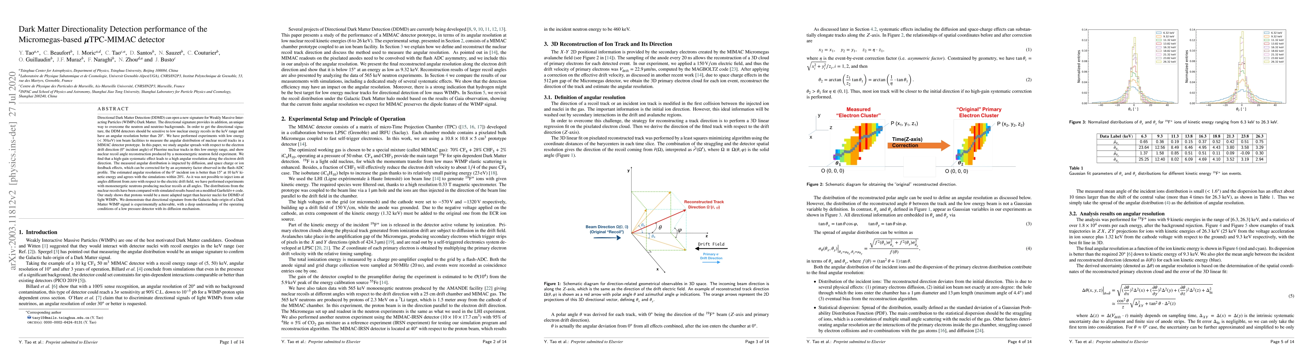 Directional Dark Matter Detection (DDMD) can open a new signature for Weakly Massive Interacting Particles (WIMPs) Dark Matter. The directional signature provides in addition, an unique way to overcome the neutron and neutrino backgrounds. In order to get the directional signature, the DDM detectors should be sensitive to low nuclear energy recoils in the keV range and have an angular resolution better than $20^{\circ}$. We have performed experiments with low energy ($<30\,\mathrm{keV}$) ion beam facilities to measure the angular distribution of nuclear recoil tracks in a MIMAC detector prototype. In this paper, we study angular spreads with respect to the electron drift direction ($0^{\circ}$ incident angle) of Fluorine nuclear tracks in this low energy range, and show nuclear recoil angle reconstruction produced by a monoenergetic neutron field experiment. We find that a high-gain systematic effect leads to a high angular resolution along the electron drift direction. The measured angular distribution is impacted by diffusion, and space charge or ion feedback effects, which can be corrected for by an asymmetry factor observed in the flash-ADC profile. The estimated angular resolution of the $0^{\circ}$ incident ion is better than $15^{\circ}$ at $10$ keV kinetic energy and agrees with the simulations within $20$%. The distributions from the nuclear recoils have been compared with simulated results based on a modified Garfield++ code. Our study shows that protons would be a more adapted target than heavier nuclei for DDMD of light WIMPs. We demonstrate that directional signature from the Galactic halo origin of a Dark Matter WIMP signal is experimentally achievable, with a deep understanding of the operating conditions of a low pressure detector with its diffusion mechanism.