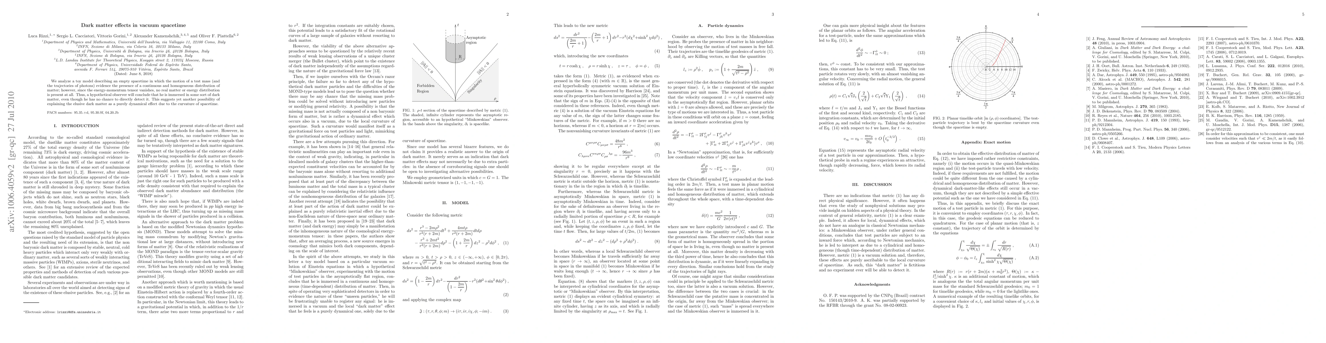 We analyze a toy model describing an empty spacetime in which the motion of a test mass (and the trajectories of photons) evidence the presence of a continuous and homogeneous distribution of matter; however, since the energy-momentum tensor vanishes, no real matter or energy distribution is present at all. Thus, a hypothetical observer will conclude that he is immersed in some sort of dark matter, even though he has no chance to directly detect it. This suggests yet another possibility of explaining the elusive dark matter as a purely dynamical effect due to the curvature of spacetime.