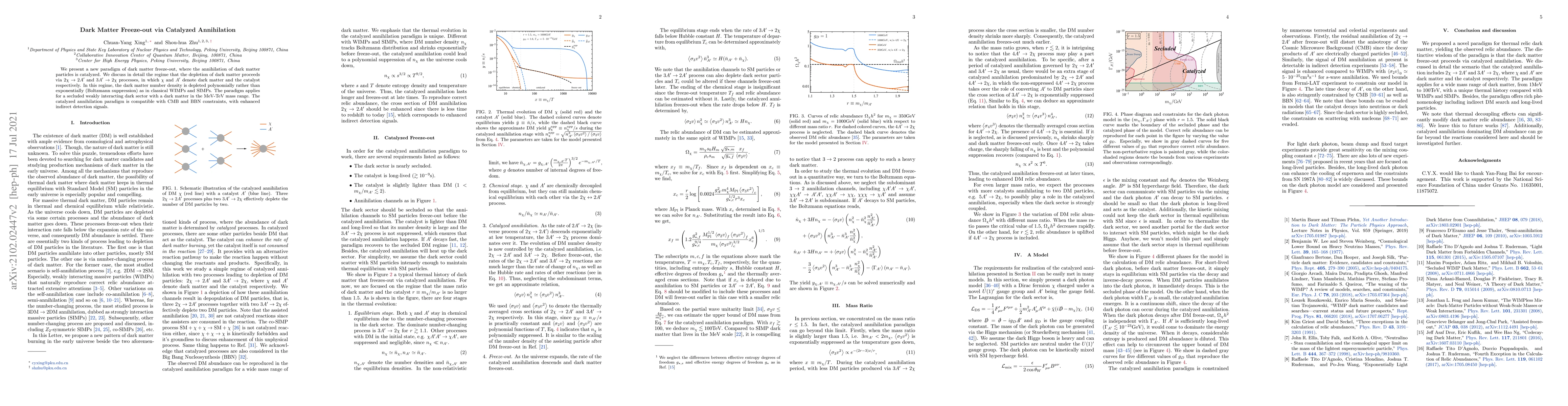 The paper presents a novel paradigm for thermal relic dark matter, where dark matter freeze-out occurs via catalyzed annihilation. It details the scenario involving 2χ→2A′ and 3A′→2χ processes, with χ as dark matter and A′ as the catalyst.