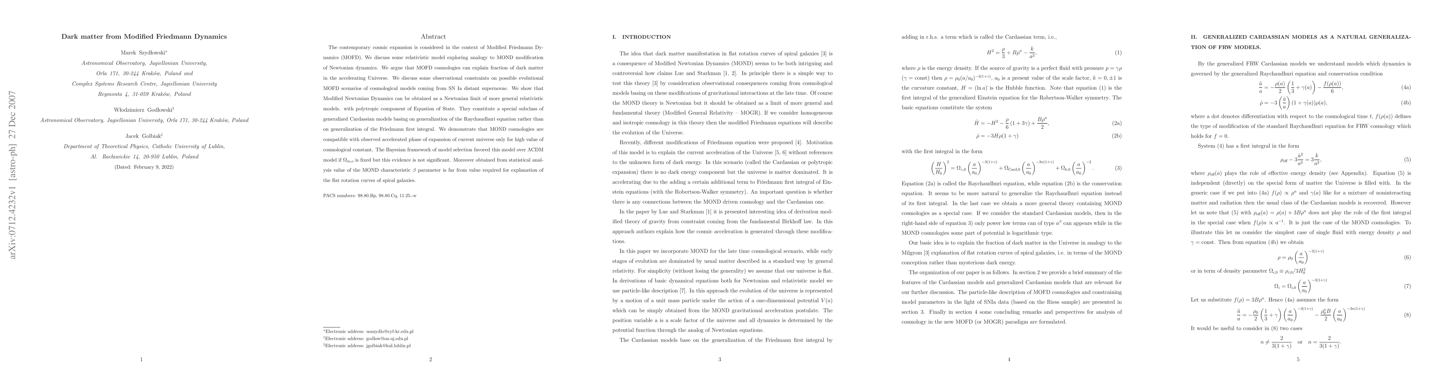 This study investigates Modified Friedmann Dynamics (MOFD) as an alternative to dark matter in cosmology, suggesting it could explain the accelerating universe's dark matter fraction, but finds limited evidence for its compatibility with observed data.