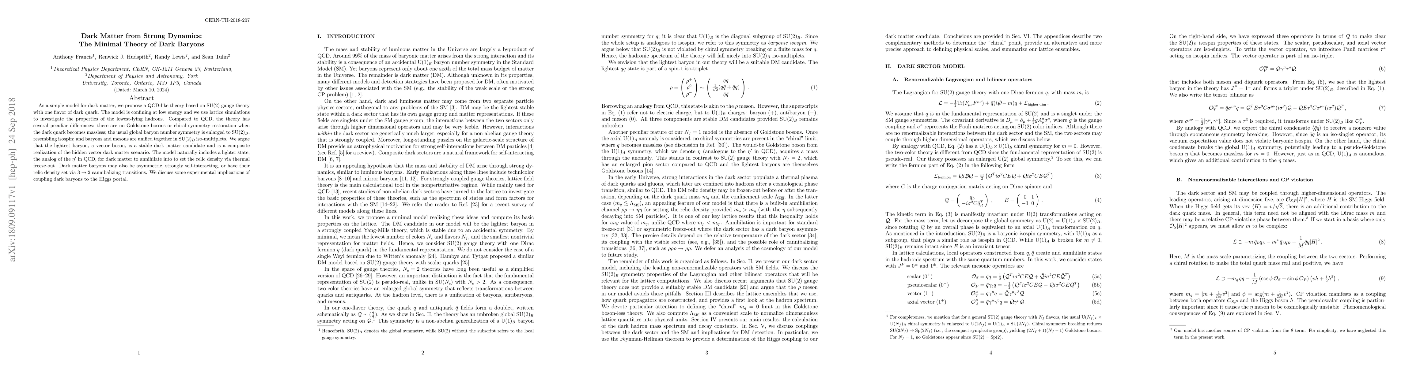 As a simple model for dark matter, we propose a QCD-like theory based on $\rm{SU}(2)$ gauge theory with one flavor of dark quark. The model is confining at low energy and we use lattice simulations to investigate the properties of the lowest-lying hadrons. Compared to QCD, the theory has several peculiar differences: there are no Goldstone bosons or chiral symmetry restoration when the dark quark becomes massless; the usual global baryon number symmetry is enlarged to $\rm{SU}(2)_B$, resembling isospin; and baryons and mesons are unified together in $\rm{SU}(2)_B$ iso-multiplets. We argue that the lightest baryon, a vector boson, is a stable dark matter candidate and is a composite realization of the hidden vector dark matter scenario. The model naturally includes a lighter state, the analog of the $\eta^\prime$ in QCD, for dark matter to annihilate into to set the relic density via thermal freeze-out. Dark matter baryons may also be asymmetric, strongly self-interacting, or have their relic density set via $3 \to 2$ cannibalizing transitions. We discuss some experimental implications of coupling dark baryons to the Higgs portal.