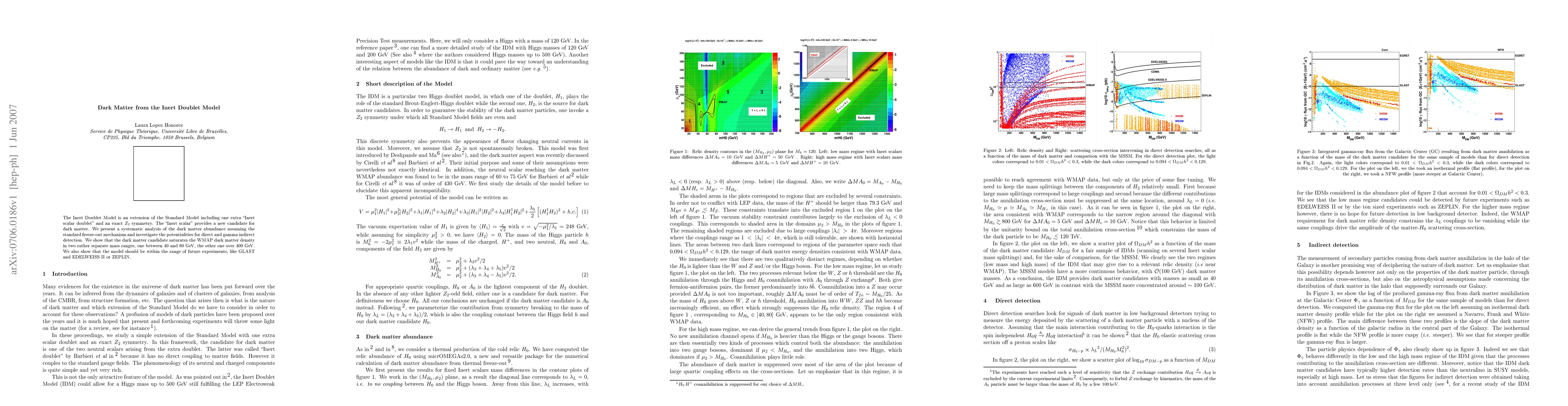The Inert Doublet Model introduces an extra inert scalar doublet with a $Z_2$ symmetry, proposing it as a viable dark matter candidate. The model's dark matter abundance aligns with WMAP measurements in two mass ranges: 40-80 GeV and over 400 GeV, and is detectable by future experiments.