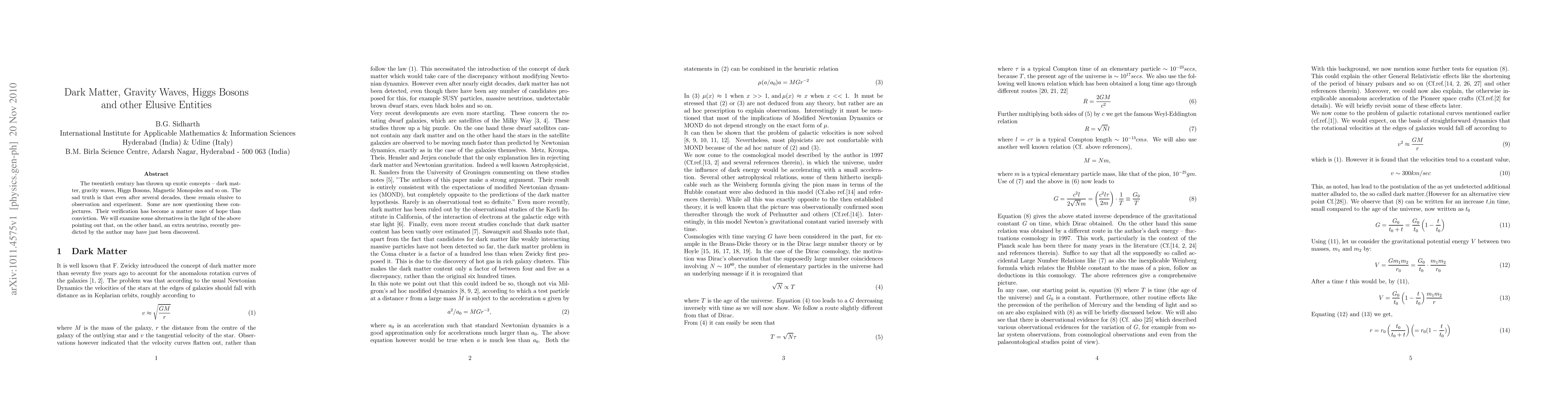 The twentieth century has thrown up exotic concepts -- dark matter, gravity waves, Higgs Bosons, Magnetic Monopoles and so on. The sad truth is that even after several decades, these remain elusive to observation and experiment. Some are now questioning these conjectures. Their verification has become a matter more of hope than conviction. We will examine some alternatives in the light of the above pointing out that, on the other hand, an extra neutrino, recently predicted by the author may have just been discovered.