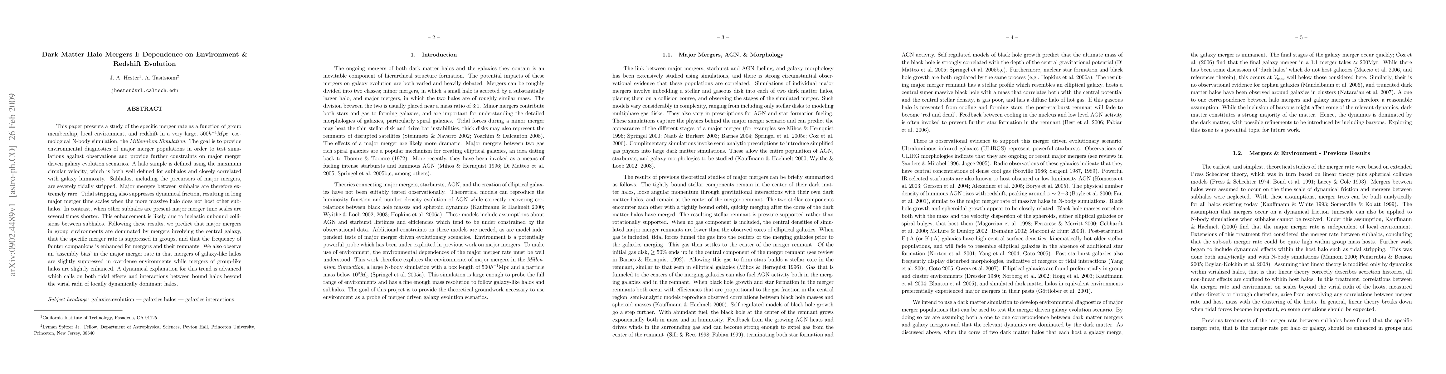 This study, using the Millennium Simulation, finds that major halo mergers are rare due to tidal stripping and suppressed dynamical friction. Mergers in group environments mostly involve central galaxies, with specific merger rates suppressed in groups and fainter companions more frequent. An 'assembly bias' is observed, with mergers of galaxy-like halos suppressed in overdense environments and group-like halos enhanced, likely due to tidal effects and interactions beyond virial radii.