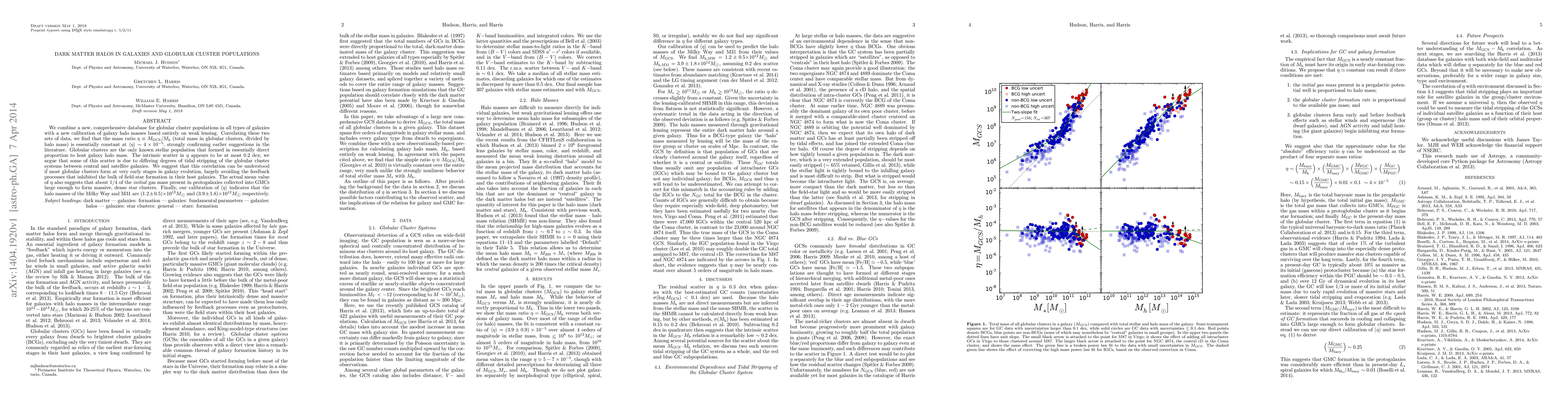 This paper correlates globular cluster populations with galaxy halo masses, revealing a constant mass ratio $\langle \eta \rangle \sim 4 \times 10^{-5}$, suggesting globular clusters form proportionally to host galaxy halo mass. The study also estimates the halo masses of the Milky Way and M31, and proposes that early galaxy formation stages largely determine this correlation.