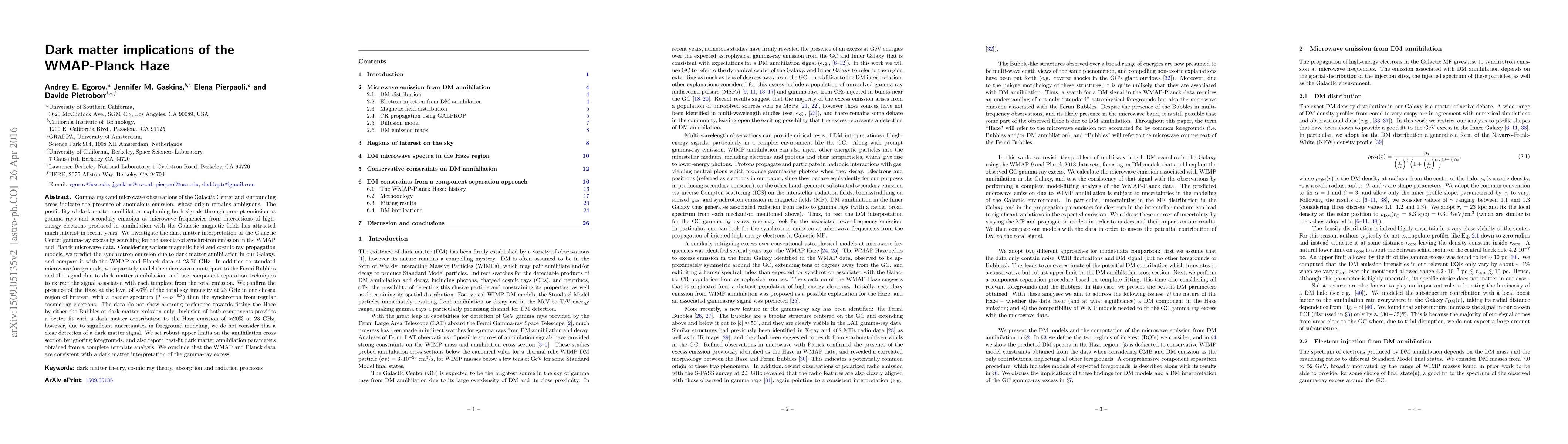 This paper investigates the potential dark matter (DM) origin of anomalous gamma-ray and microwave emissions from the Galactic Center, finding a 20% DM contribution to the microwave "Haze" at 23GHz, though uncertainties prevent a clear detection. The study sets upper limits on the DM annihilation cross section and finds the WMAP-Planck data consistent with a DM interpretation of the gamma-ray excess.