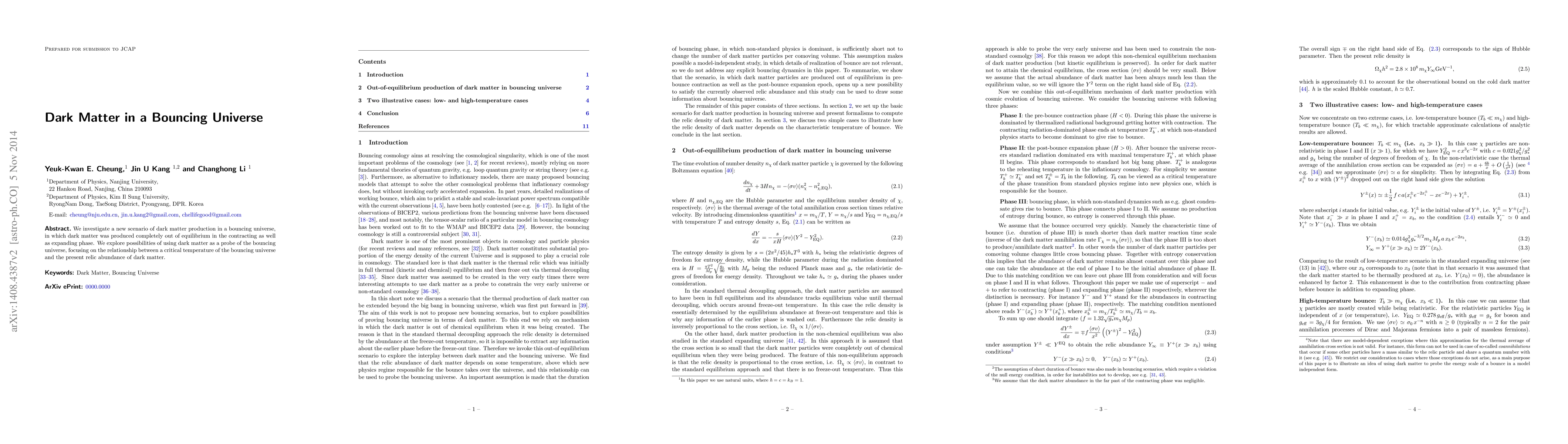 This paper explores dark matter production in a bouncing universe model, proposing that dark matter was generated out of equilibrium during both contraction and expansion phases. The study examines the potential use of dark matter as a probe to understand the critical temperature and its relation to the present relic abundance of dark matter.