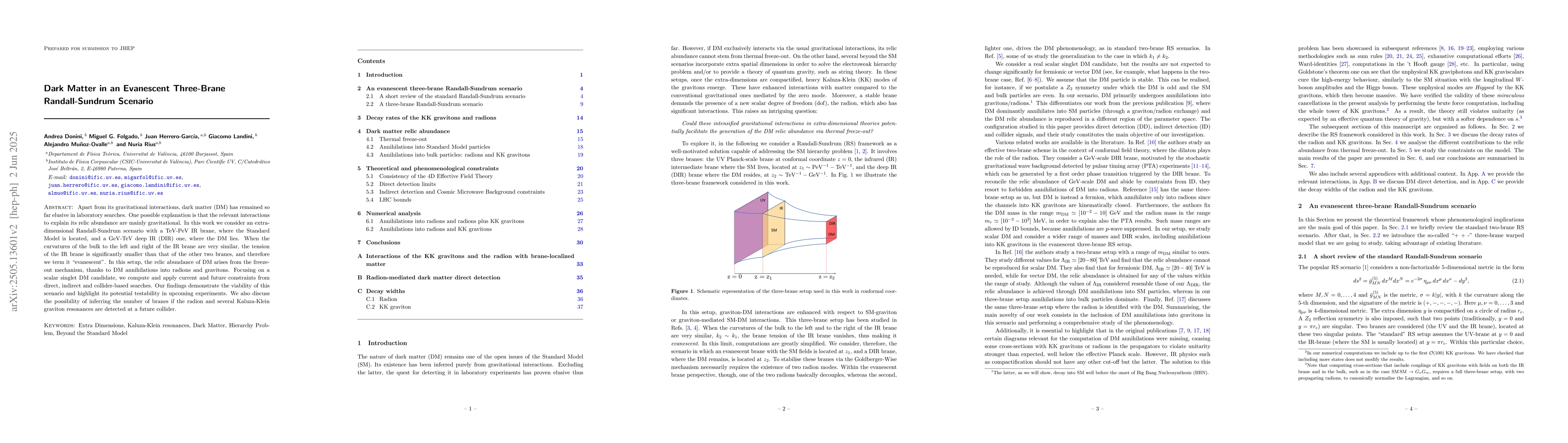 The paper introduces an evanescent three-brane Randall-Sundrum scenario to explain dark matter, demonstrating its viability through various search constraints and discussing collider signatures.