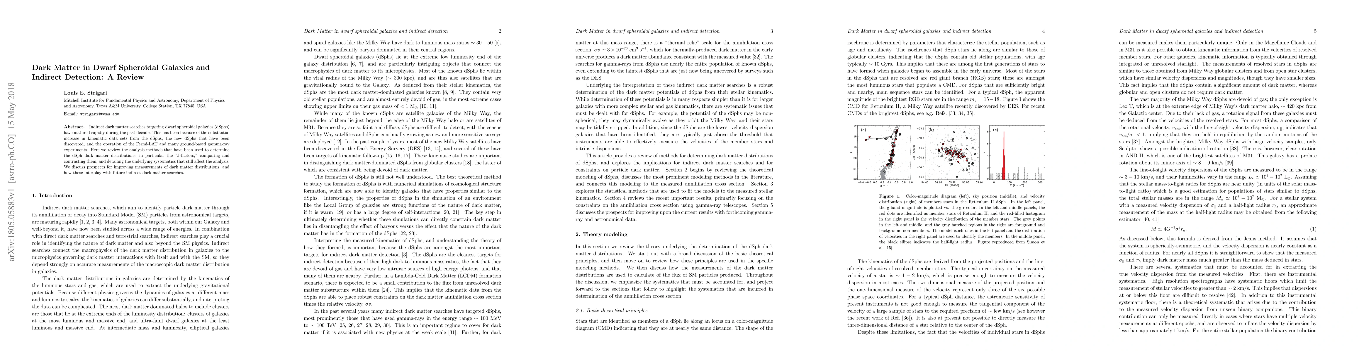 This paper reviews the progress in indirect dark matter detection in dwarf spheroidal galaxies, focusing on analysis methods for determining dark matter distributions, particularly "J-factors," and discusses the systematic uncertainties involved. It also explores future prospects for enhancing these measurements and their relevance to upcoming dark matter searches.
