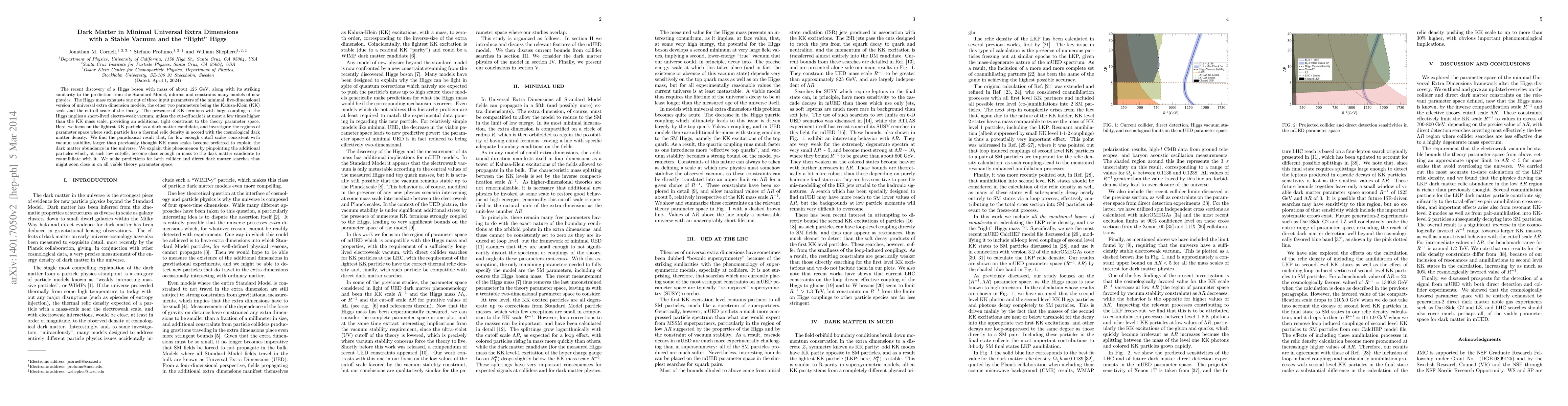 The recent discovery of a Higgs boson with mass of about 125 GeV, along with its striking similarity to the prediction from the Standard Model, informs and constrains many models of new physics. The Higgs mass exhausts one out of three input parameters of the minimal, five-dimensional version of universal extra dimension models, the other two parameters being the Kaluza-Klein (KK) scale and the cut-off scale of the theory. The presence of KK fermions with large coupling to the Higgs implies a short-lived electro-weak vacuum, unless the cut-off scale is at most a few times higher than the KK mass scale, providing an additional tight constraint to the theory parameter space. Here, we focus on the lightest KK particle as a dark matter candidate, and investigate the regions of parameter space where such particle has a thermal relic density in accord with the cosmological dark matter density. We find the paradoxical result that, for low enough cutoff scales consistent with vacuum stability, larger than previously thought KK mass scales become preferred to explain the dark matter abundance in the universe. We explain this phenomenon by pinpointing the additional particles which, at such low cutoffs, become close enough in mass to the dark matter candidate to coannihilate with it. We make predictions for both collider and direct dark matter searches that might soon close in on all viable theory parameter space.
