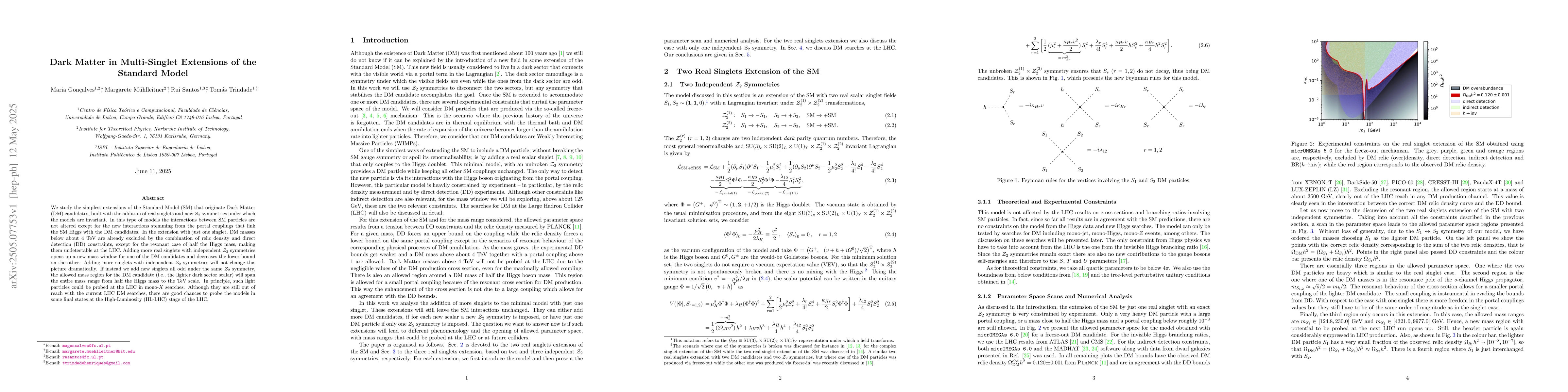 The research investigates extensions of the Standard Model with real singlets and ${Z}_2$ symmetries, focusing on Dark Matter candidates and their interactions through portal couplings with the SM Higgs.