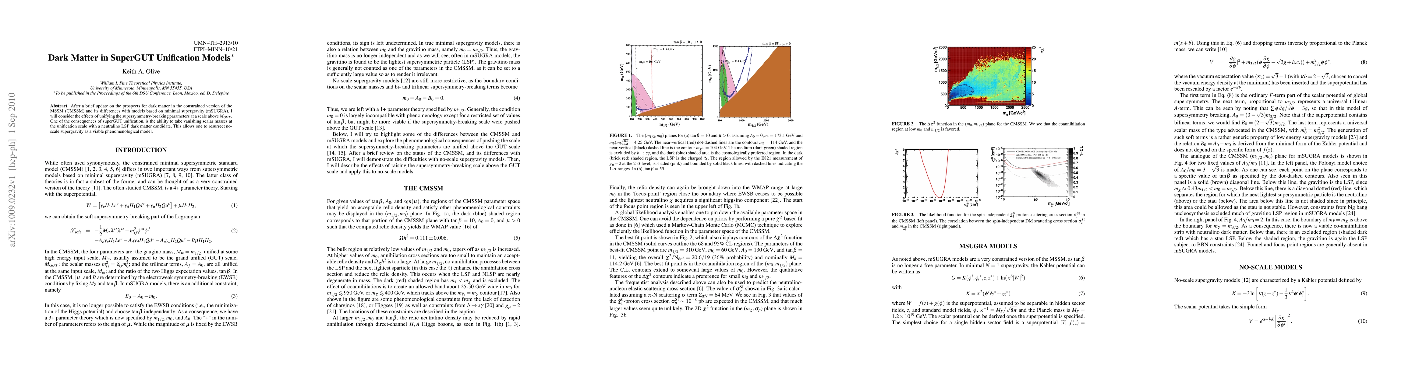 After a brief update on the prospects for dark matter in the constrained version of the MSSM (CMSSM) and its differences with models based on minimal supergravity (mSUGRA), I will consider the effects of unifying the supersymmetry-breaking parameters at a scale above M_{GUT}. One of the consequences of superGUT unification, is the ability to take vanishing scalar masses at the unification scale with a neutralino LSP dark matter candidate. This allows one to resurrect no-scale supergravity as a viable phenomenological model.