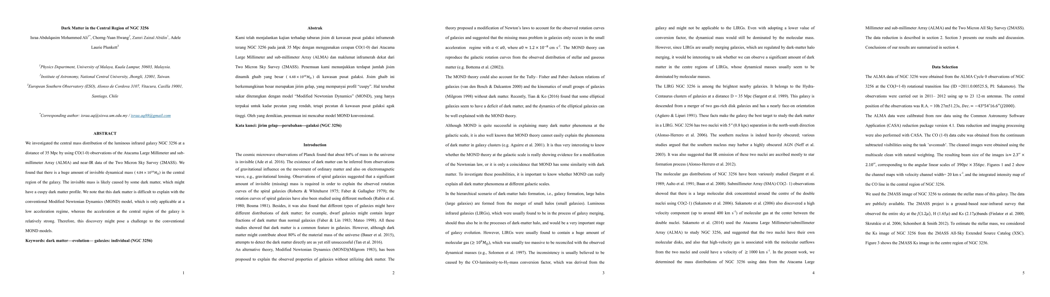 We investigated the central mass distribution of the luminous infrared galaxy NGC 3256 at a distance of 35 Mpc by using CO(1-0) observations of the Atacama Large Millimeter and sub-millimeter Array (ALMA) and near-IR data of the Two Micron Sky Survey (2MASS). We found that there is a huge amount of invisible dynamical mass ($4.84 \times 10^{10} M_{\odot}$) in the central region of the galaxy. The invisible mass is likely caused by some dark matter, which might have a cuspy dark matter profile. We note that this dark matter is difficult to explain with the conventional Modified Newtonian Dynamics (MOND) model, which is only applicable at a low acceleration regime, whereas the acceleration at the central region of the galaxy is relatively strong. Therefore, this discovery might pose a challenge to the conventional MOND models.