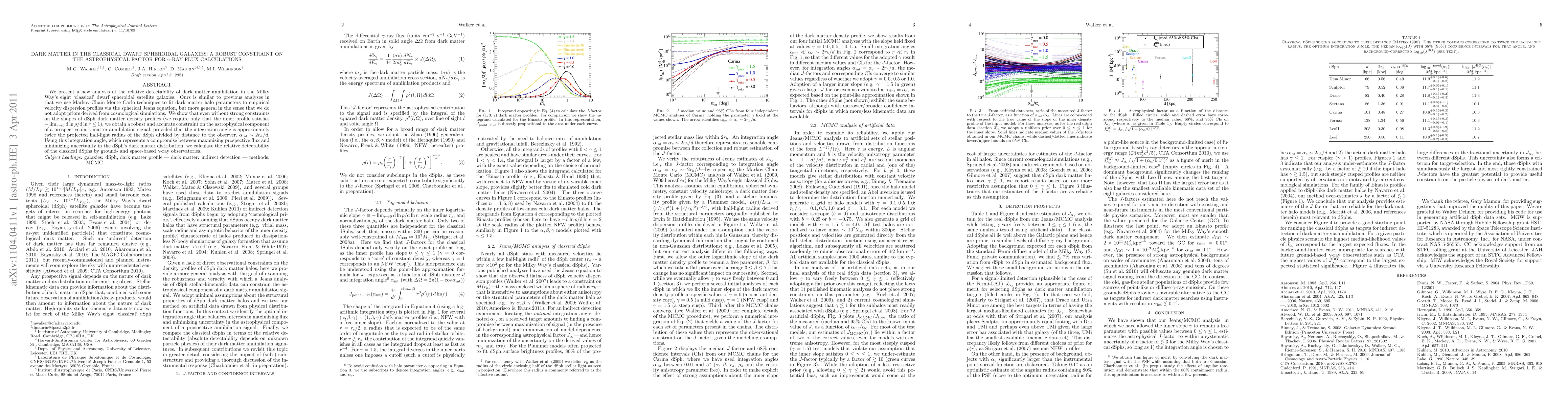 This research analyzes the detectability of dark matter annihilation in the Milky Way's classical dwarf spheroidal galaxies using Markov-Chain Monte Carlo techniques. It finds a robust constraint on the astrophysical factor for gamma-ray flux calculations, independent of strict dark matter density profile assumptions, by integrating over an angle approximately twice the projected half-light radius divided by distance to the observer.