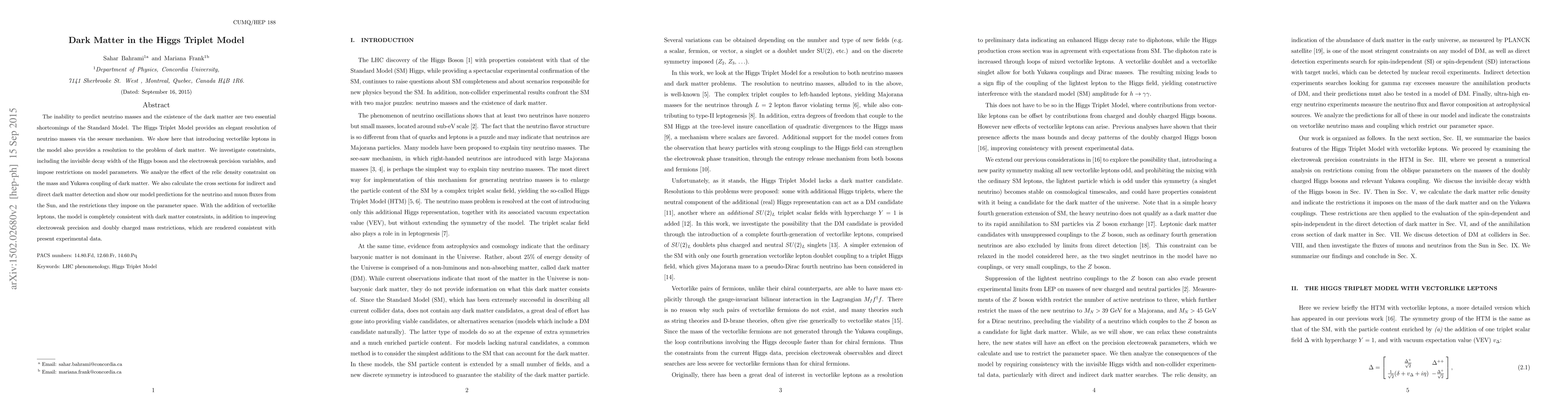 The paper introduces vectorlike leptons into the HTM, demonstrating their role in resolving neutrino mass and dark matter issues, and analyzes the resulting constraints from electroweak precision observables and dark matter detection.