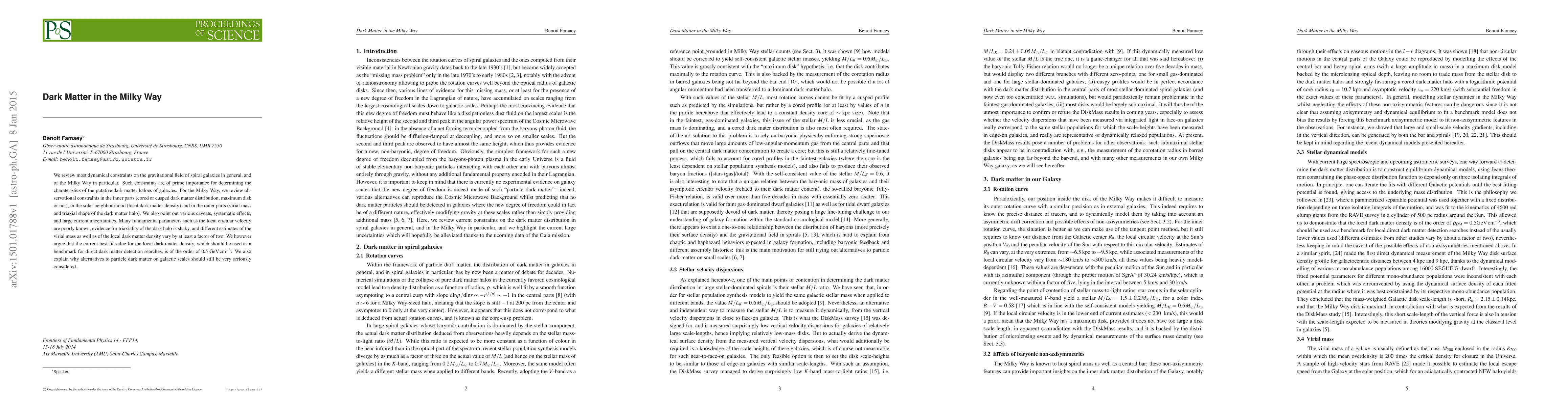 The paper presents a comprehensive review of observational constraints on the Milky Way's gravitational field, emphasizing the uncertainties and caveats in current estimates of dark matter distribution, local density, and halo shape.