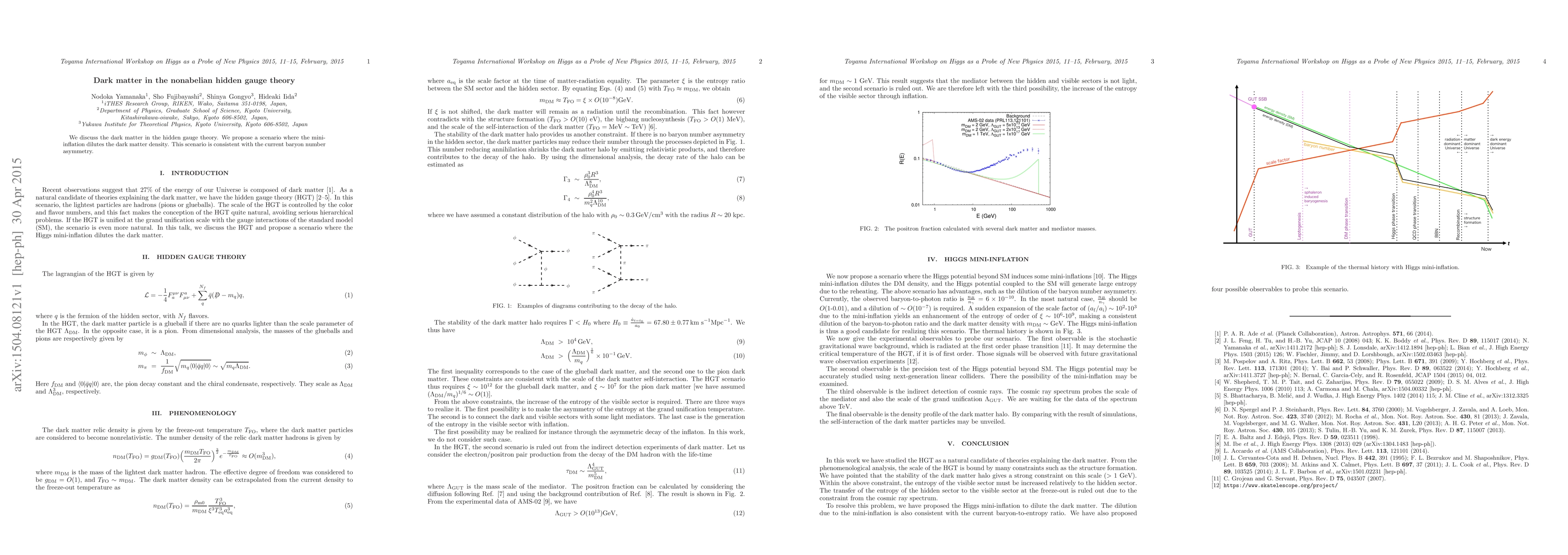 This paper explores dark matter within a nonabelian hidden gauge theory and proposes a mini-inflation mechanism to dilute dark matter density, aligning with observed baryon number asymmetry.