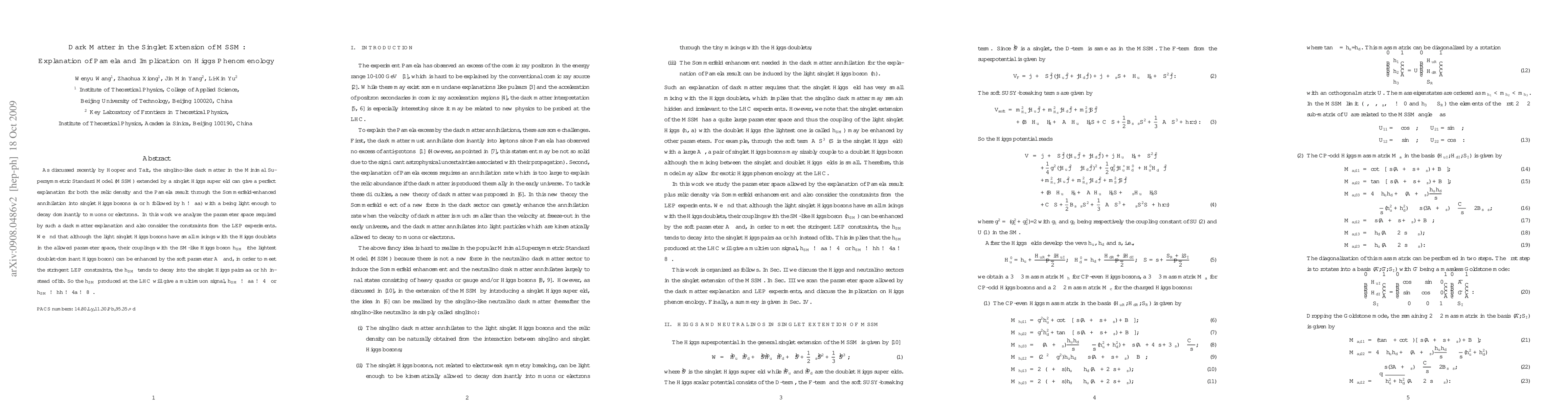 As discussed recently by Hooper and Tait, the singlino-like dark matter in the Minimal Supersymmetric Standard Model (MSSM) extended by a singlet Higgs superfield can give a perfect explanation for both the relic density and the Pamela result through the Sommerfeld-enhanced annihilation into singlet Higgs bosons ($a$ or $h$ followed by $h->a a$) with $a$ being light enough to decay dominantly to muons or electrons. In this work we analyze the parameter space required by such a dark matter explanation and also consider the constraints from the LEP experiments. We find that although the light singlet Higgs bosons have small mixings with the Higgs doublets in the allowed parameter space, their couplings with the SM-like Higgs boson $h_{SM}$ (the lightest doublet-dominant Higgs boson) can be enhanced by the soft parameter $A_\kappa$ and, in order to meet the stringent LEP constraints, the $h_{SM}$ tends to decay into the singlet Higgs pairs $aa$ or $hh$ instead of $b\bar b$. So the $h_{SM}$ produced at the LHC will give a multi-muon signal, h_{SM} -> aa -> 4 muons or h_{SM} -> hh -> 4 a -> 8 muons.