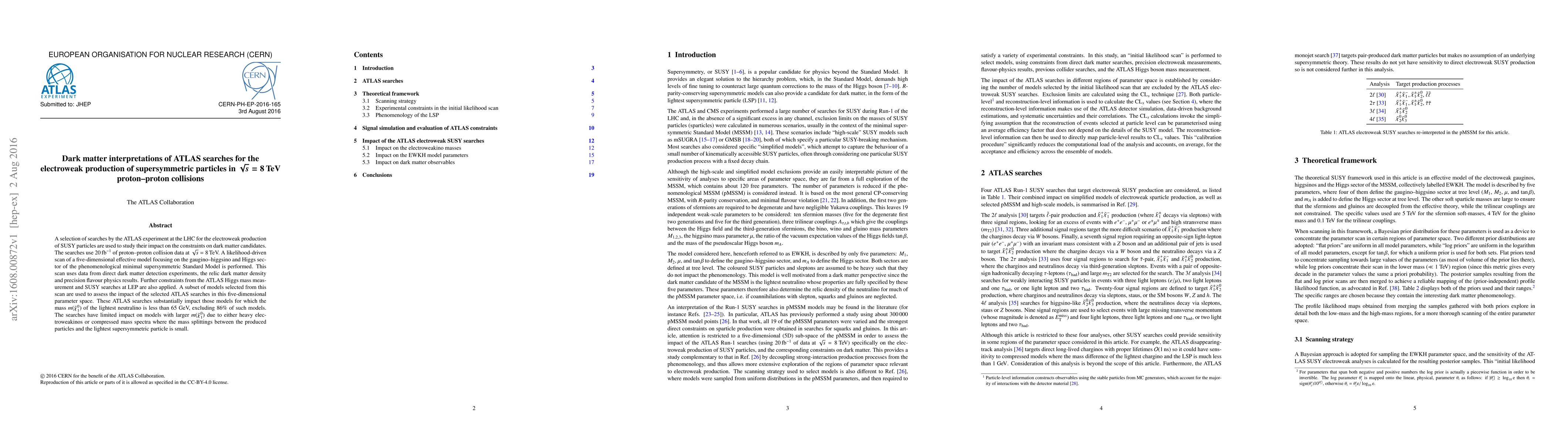 A selection of searches by the ATLAS experiment at the LHC for the electroweak production of SUSY particles are used to study their impact on the constraints on dark matter candidates. The searches use $20\,{\rm fb}^{-1}$ of proton-proton collision data at $\sqrt{s}=8$ TeV. A likelihood-driven scan of a five-dimensional effective model focusing on the gaugino--higgsino and Higgs sector of the phenomenological minimal supersymmetric Standard Model is performed. This scan uses data from direct dark matter detection experiments, the relic dark matter density and precision flavour physics results. Further constraints from the ATLAS Higgs mass measurement and SUSY searches at LEP are also applied. A subset of models selected from this scan are used to assess the impact of the selected ATLAS searches in this five-dimensional parameter space. These ATLAS searches substantially impact those models for which the mass $m(\tilde{\chi}^0_1)$ of the lightest neutralino is less than 65 GeV, excluding 86% of such models. The searches have limited impact on models with larger $m(\tilde{\chi}^0_1)$ due to either heavy electroweakinos or compressed mass spectra where the mass splittings between the produced particles and the lightest supersymmetric particle is small.