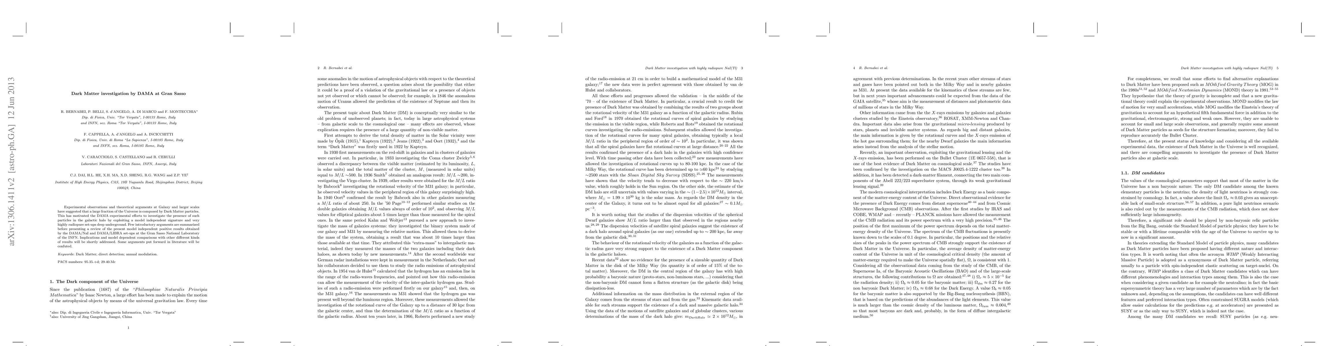 Experimental observations and theoretical arguments at Galaxy and larger scales have suggested that a large fraction of the Universe is composed by Dark Matter particles. This has motivated the DAMA experimental efforts to investigate the presence of such particles in the galactic halo by exploiting a model independent signature and very highly radiopure set-ups deep underground. Few introductory arguments are summarized before presenting a review of the present model independent positive results obtained by the DAMA/NaI and DAMA/LIBRA set-ups at the Gran Sasso National Laboratory of the INFN. Implications and model dependent comparisons with other different kinds of results will be shortly addressed. Some arguments put forward in literature will be confuted.
