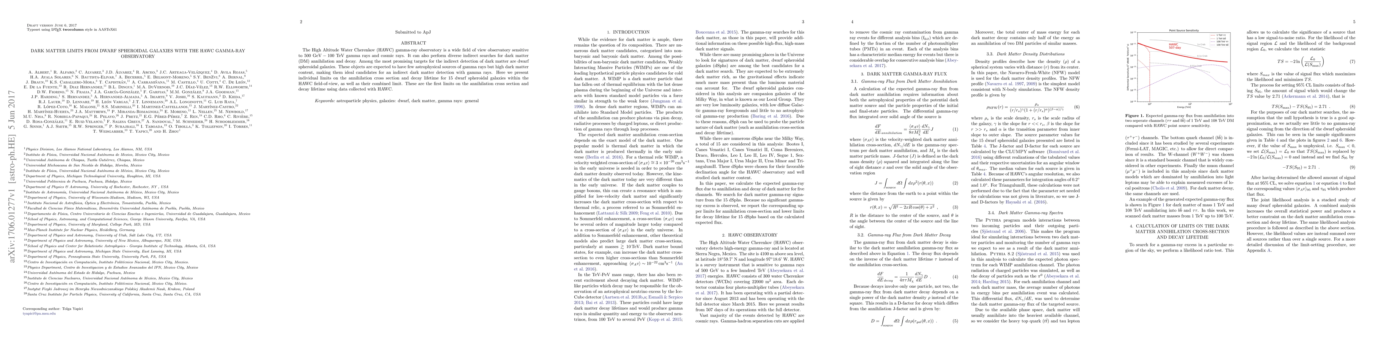 The HAWC gamma-ray observatory provides new limits on dark matter annihilation cross sections and decay lifetimes for 15 dwarf spheroidal galaxies, leveraging their high dark matter content and low astrophysical gamma-ray sources. These are the first such limits derived from HAWC data.